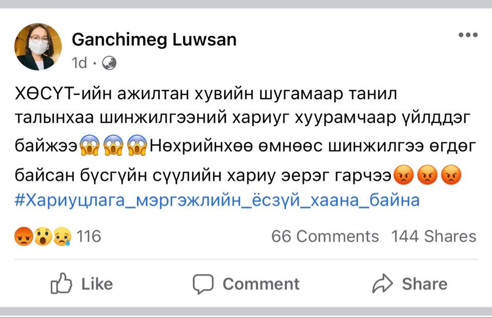 МАН, тэр дундаа ам нээх бүртээ “Шударга ёс” хэмээдэг Ерөнхий сайдыг энэ удаад өөртөө, өөрийнх нь ахалж байгаа танхимын албатууд үндэсний аюулгүй байдалд заналхийлсэн, үндэстний эсрэг гэмт хэрэг үйлдээд байхад хэр шударга хандахыг харах үлдлээ.