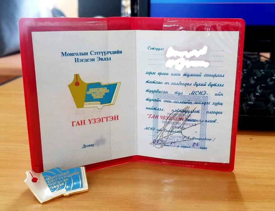 Энэ мэтээр үүрэгт ажлаа хүлээлгэн өгөөд хэдийн жил тойрч байгаа түүний нэр, гарын үсэг Монголын сэтгүүлчдийн нэгдсэн эвлэлээс салсангүй. Уг нь МСНЭ гэдэг байгууллага дур нь хүрэхээр хүрээд ирдэг, дургүй нь хүрэхээр хаяад явдаг байгууллага биш л байлтай.