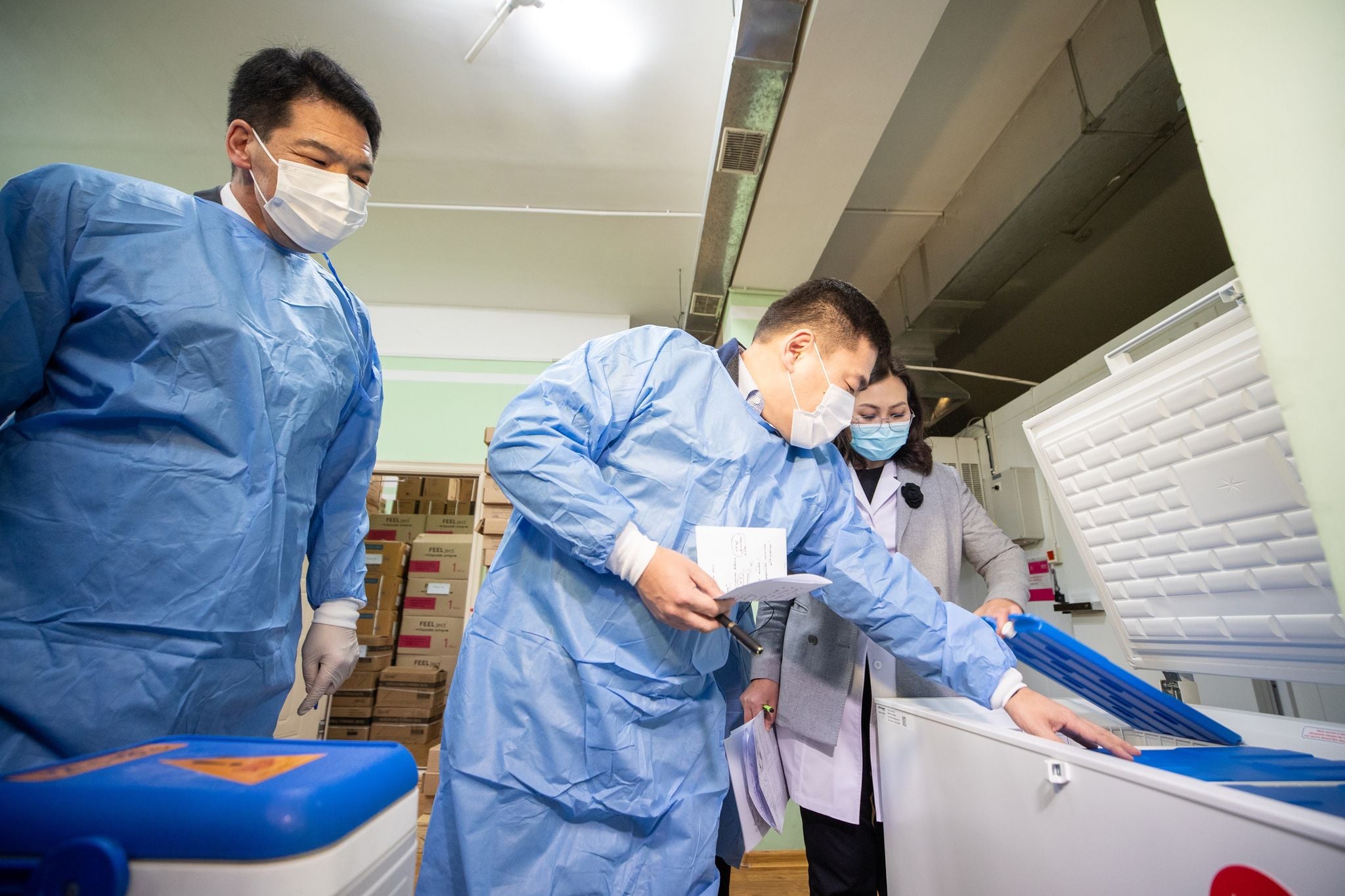 ХӨСҮТ-ийн мэргэжилтнүүдтэй уулзаж, вакцин хүлээн авах, хадгалах бэлтгэл ажил хэрхэн хангагдаж буйтай танилцаж, оруулж ирсэн вакциныхаа анхны тунг өөртөө хийлгэнэ гэж мэдэгдэв.