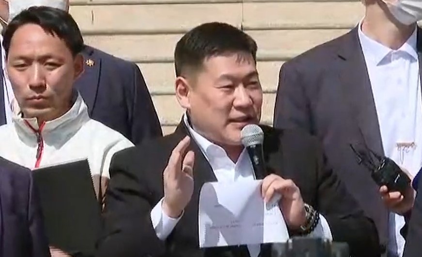 Ерөнхий сайд Л.Оюун-Эрдэнэ жагсагч нартай уулзаж, мэдээлэл хийж байна.