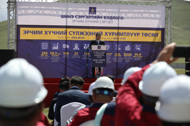 “Шинэ сэргэлтийн бодлого”-ын Эрчим хүчний сэргэлт багц ажлыг хэрэгжүүлэх хүрээнд 13 арга хэмжээ, 22 хөгжлийн төслийг эхний ээлжинд үе шаттайгаар хэрэгжүүлэхээр тусгасан. Энэ хүрээнд өнөөдөр “Эрчим хүчний сүлжээнд ашиглах том чадлын хуримтлуур” төслийн барилга угсралтын ажлыг эхлүүлж байна. Нээлтэд Монгол Улсын Ерөнхий сайд Л.Оюун-Эрдэнэ оролцлоо.