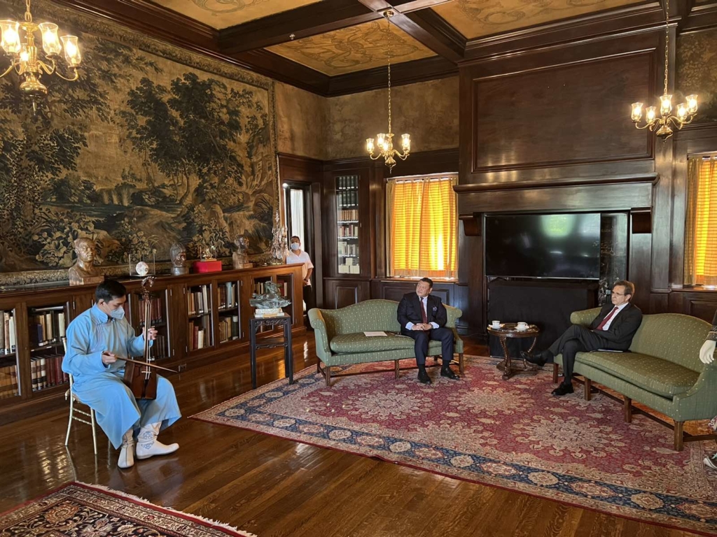 Уулзалтын дараа Монгол Улсын түүх, соёл урлагийг сурталчлан үндэсний хөгжим, хувцас болон Монголын тухай дүрс бичлэгийг толилуулж, морин хуур эгшиглүүлэв.