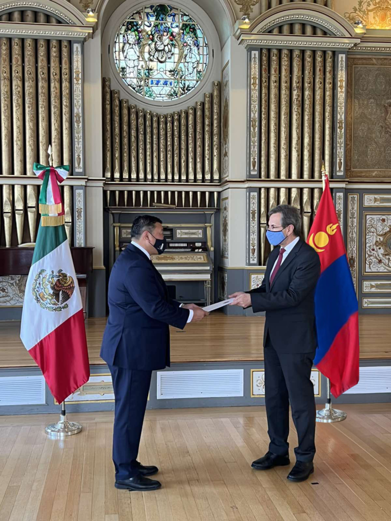Монгол Улсаас Мексикийн Нэгдсэн Улсад хавсран суух Элчин сайд Ө.Батбаяр 2022 оны наймдугаар сарын 4-ний өдөр Мексикийн Нэгдсэн Улсаас АНУ-д суугаа Элчин сайд Эстебан Моктезума-тай Вашингтон ДиСи хот дахь Мексикийн соёлын төвд уулзаж, Итгэмжлэх жуух бичгийнхээ хуулбарыг гардуулав.