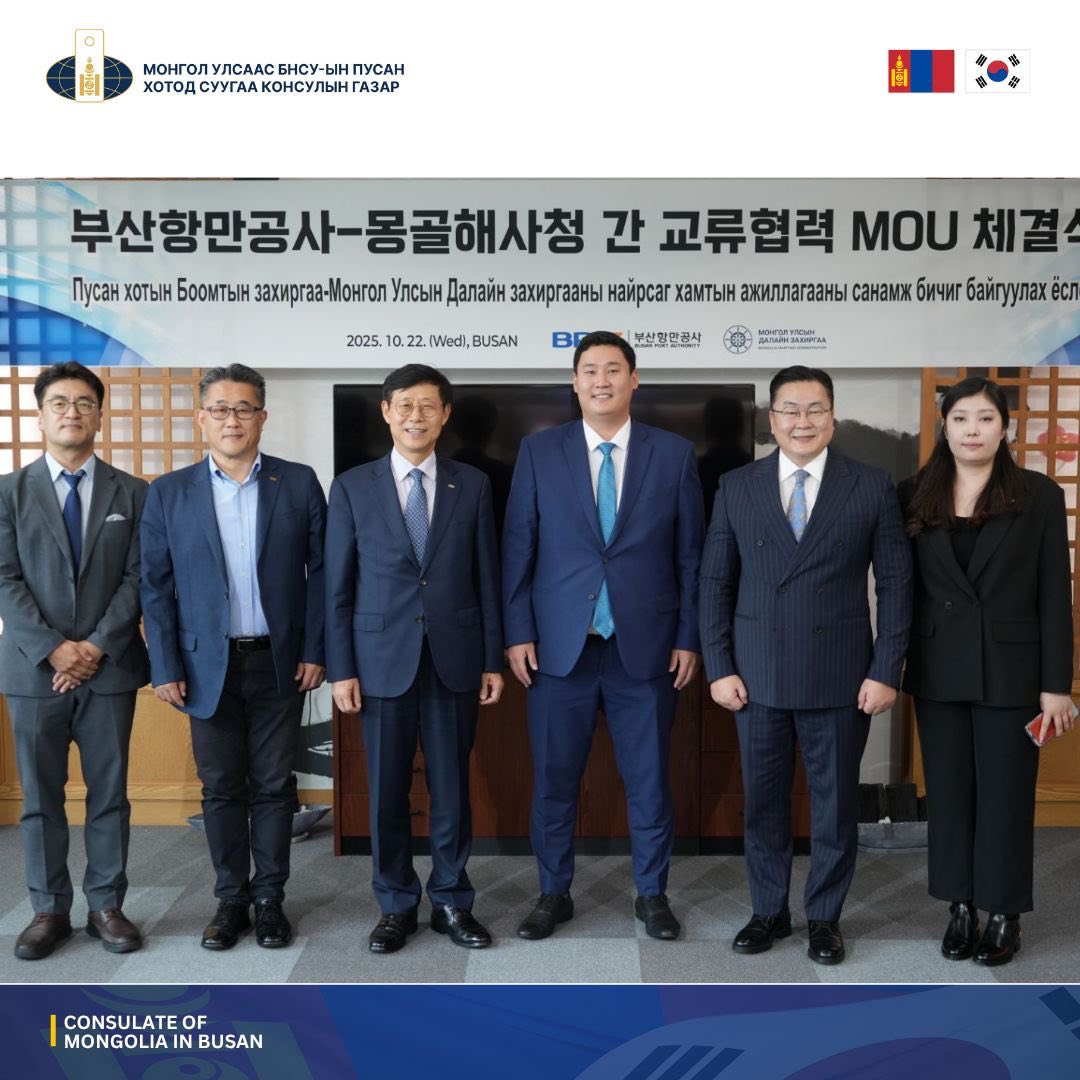 Дээрх уулзалтын үр дүнд 2025 оны аравдугаар сарын 22-ны өдөр Пусан Олон улсын боомтыг Монгол Улс руу албан ёсоор нээх санамж бичигт Монгол Улсын Далайн захиргааны дарга М.Өлзий, Пусан хотын Боомтын захиргааны захирал Сун Сан Гын нар гарын үсэг зурлаа.