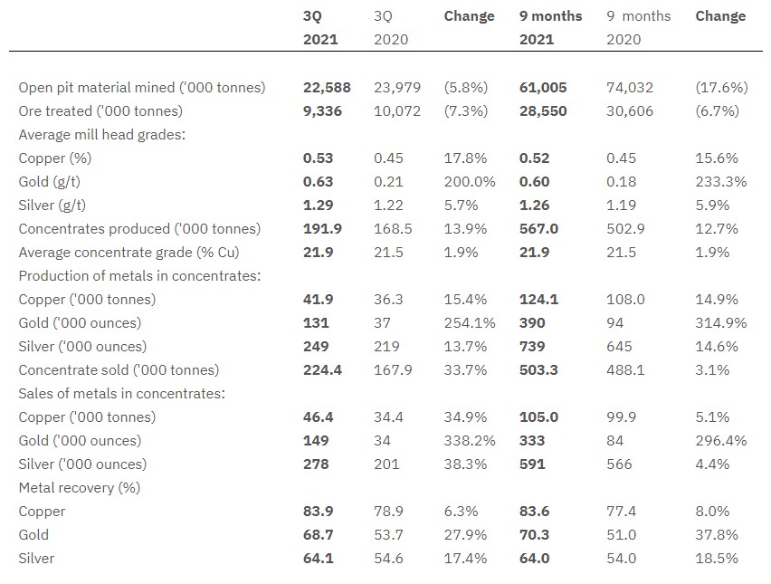 “Turquiose Hill” компани III улирлын тайландаа “Сайн үр дүн гаргасан” талаараа онцолсон байна. Үүнд Оюутолгойн ил болон далд уурхайгаас III улиралд 41,935 тонн зэс олборлосон нь өмнөх оны мөн үеийнхээс 16 хувиар, II улиралтай харьцуулахад 14 хувиар өсжээ. Мөн тус улиралд 130,799 унц алт олборлосон нь өмнөх оны мөн үеийнхээс 14 хувиар өссөн байна.
