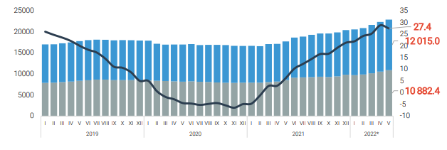 Аж ахуйн нэгж, байгууллага, иргэдэд олгосон нийт зээлийн өрийн үлдэгдэл өнгөрсөн тавдугаар сарын эцэст 23.3 их наяд төгрөг болсон. Энэ нь өнгөрсөн сараасаа 502.2 тэрбум төгрөг буюу 2.2 хувиар, өмнөх оны мөн үеэс таван их наяд төгрөгөөр өссөн юм. Нийт зээлийн өрийн үлдэгдлийн 51.6 хувь нь иргэд, 46.8 хувь нь хувийн байгууллага, 0.8 хувь нь төрийн байгууллага, 0.8 хувь нь санхүүгийн болон бусад байгууллага эзэлж байна. Харин нийт өр, зээлийн үлдэгдлийн 4.6 хувь буюу 2.1 их наяд төгрөгийн зээлийн хугацаа хэтэрч, чанаргүй зээл болжээ.