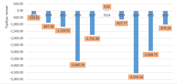 Зураг 2. Төсвийн алдагдал /2012-2022/