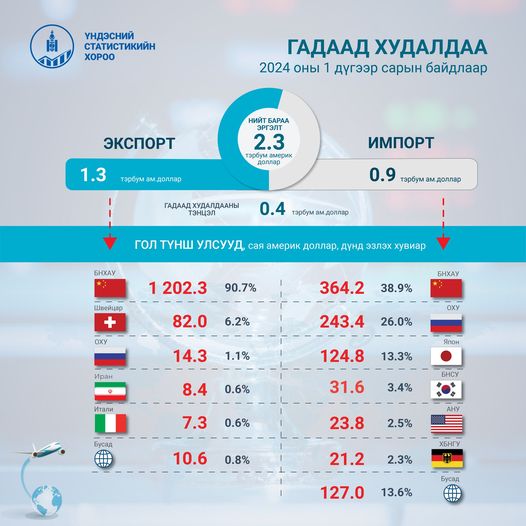 2023 оны Монголын эдийн засгийн өсөлт нь 2018 оноос хойших хамгийн өндөр түвшинд хүрч байгаа бөгөөд өсөлтөд нүүрсний экспорт өнгөрсөн онд түүхэн дээд түвшиндээ хүрсэн, уул уурхайн биржийн үйл ажиллагаа голлон нөлөөлсөн талаар онцолжээ. Түүнчлэн өнгөрсөн онд уул уурхайн салбар 23.4 хувь, тээврийн салбар 39.3 хувь, аж үйлдвэр, барилгын салбар 4.1 хувь, үйлчилгээний салбар 9.2 хувиар өссөн бол хөдөө, аж ахуйн салбар 8.9 хувиар унасан үзүүлэлттэй байна.