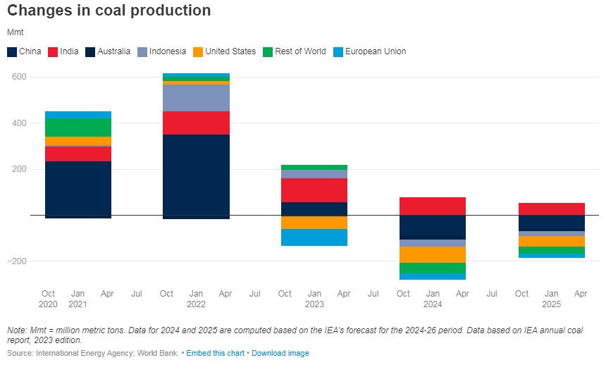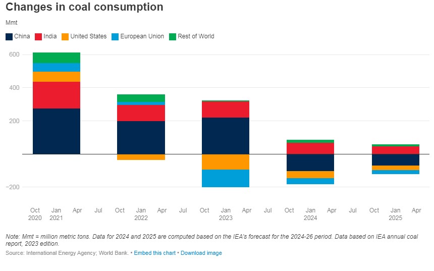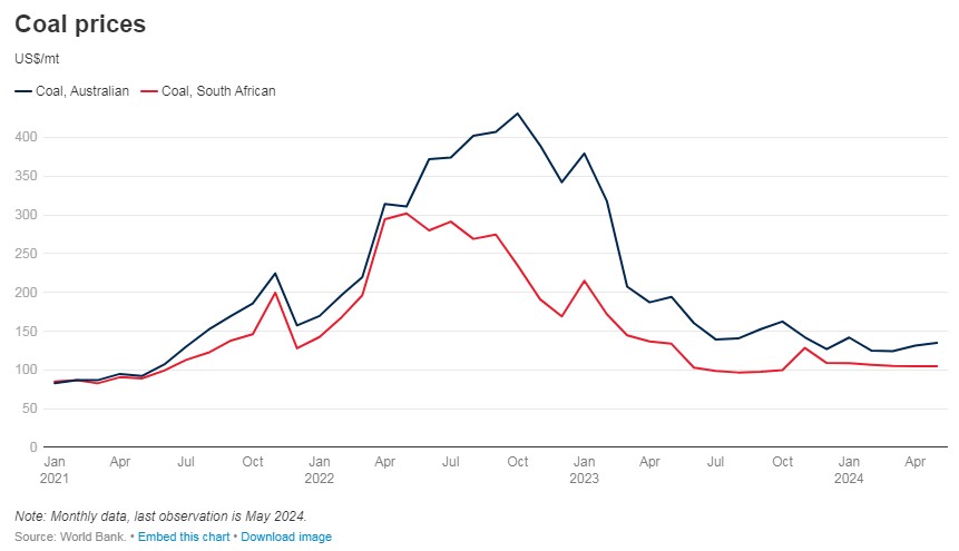 2024 оны эхний улиралд ажиглагдсан нүүрсний үнийн уналтыг 2023 оны үетэй харьцуулбал дунджаас доогуур орсон бөгөөд ирэх 2025 онд ч нүүрсний үнэ, эрэлт үргэлжлүүлэн буурах төлөвтэй байгааг Дэлхийн банкны шинжээчид онцолсон. Уг хэтийн төлөвт БНХАУ-ын эрчим хүчний үйлдвэрлэл голчлон нөлөө үзүүлж байгаа бөгөөд сэргээгдэх эрчим хүч рүү шилжих төсөл, хөтөлбөрүүдээ эхлүүлсэн нь шууд утгаараа нэг орон нүүрсний үнэд нөлөөлж байгаа ч гэж болох аж.