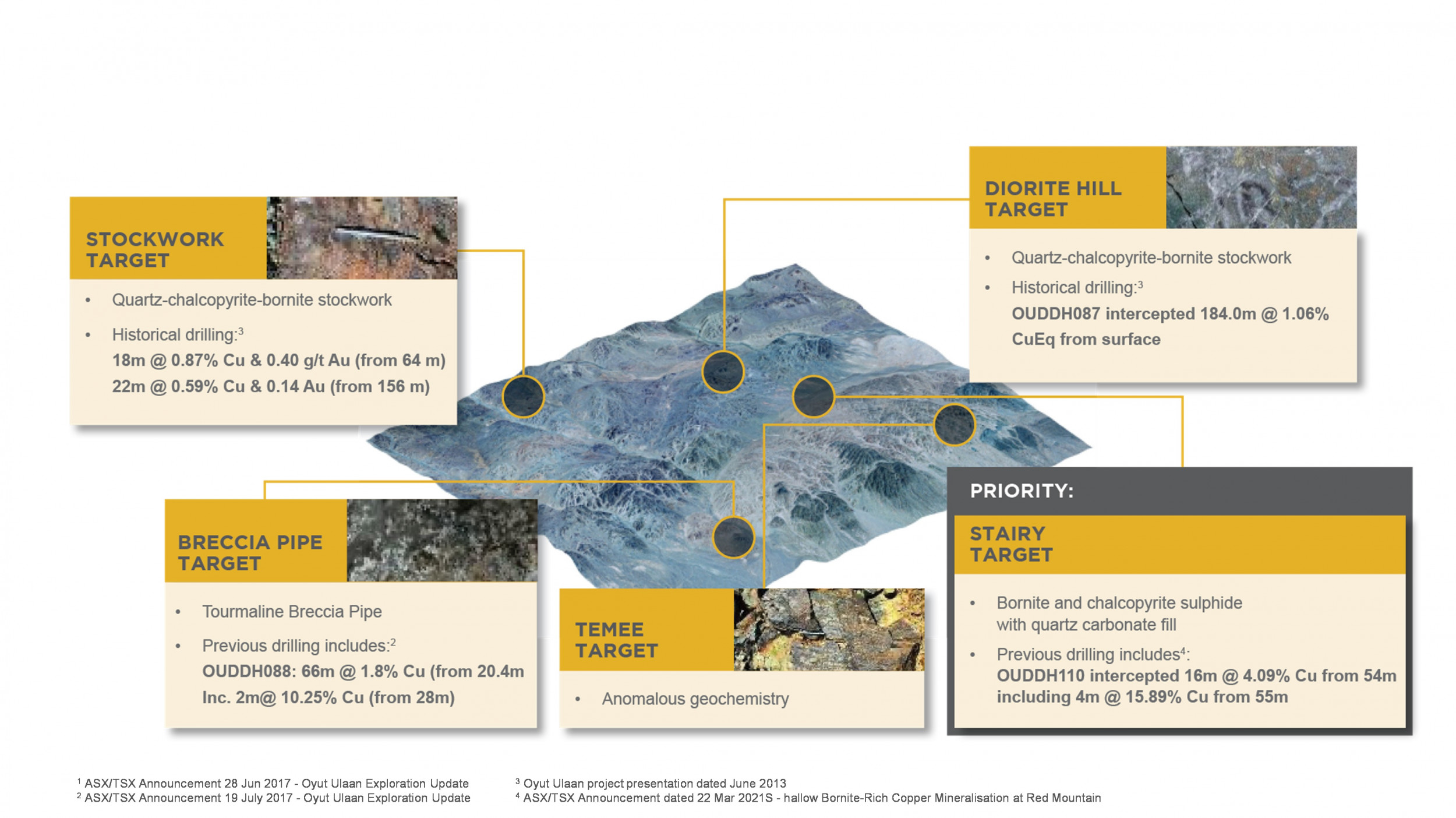 Мөн Дорноговь аймагт орших Улаан-Уул хайгуулын талбайн 2950 метрт алмазан өрөмдлөгө хийж, Stairy талбайд өндөр агуулгатай зэсийн эрдэсжилт илрүүлж, гурван цооногт зэс, мөнгөний агууламж өндөртэй судал илрүүлсэн аж.