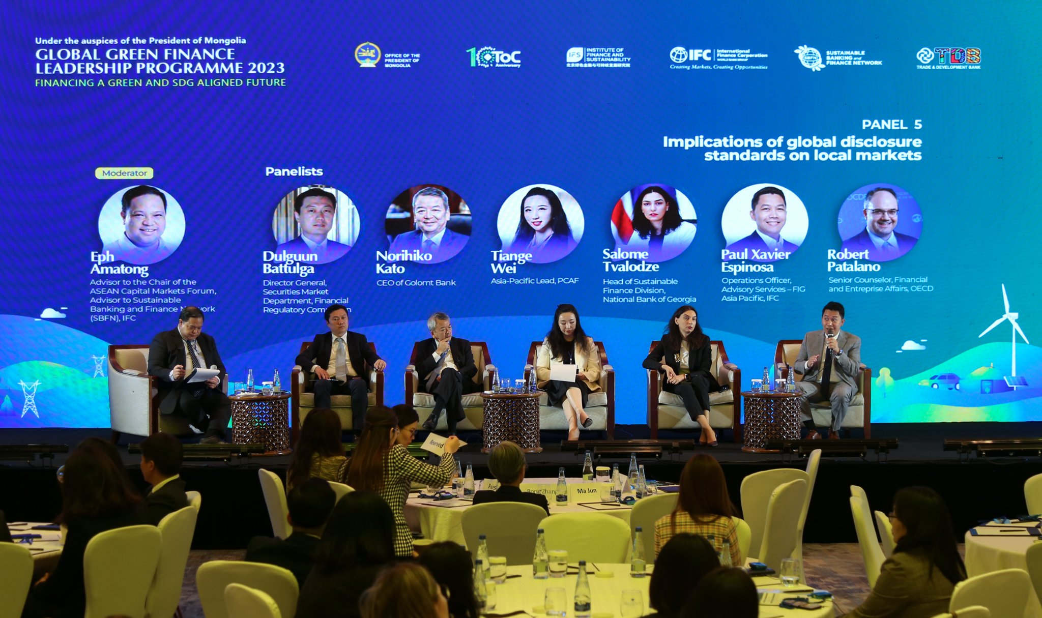 Монгол Улсын Ерөнхийлөгчийн Тамгын Газар, ТоС Холбоо, IFS, ОУСК, Худалдаа, хөгжлийн банк (ХХБ), бусад гадаад, дотоодын дэмжигч байгууллагууд Ногоон Санхүүгийн Олон Улсын Манлайллын Хөтөлбөр 2023 -г зохион байгуулж байна. Хөтөлбөрийн хүрээнд “Ногоон, Тогтвортой хөгжилд тэмүүлсэн ирээдүйг санхүүжүүлэх нь” цуврал хэлэлцүүлэг боллоо.