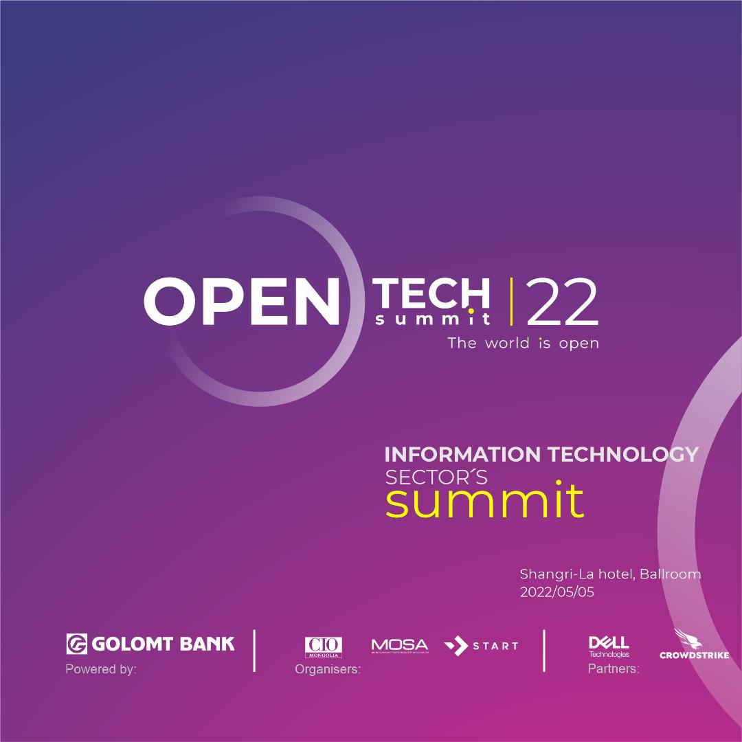 Голомт банк, CIO club, START компани, Монголын Программ Хангамж Үйлдвэрлэгчдийн Холбоо ТББ нар хамтран “Open Tech Summit-2022” форумыг зохион байгуулах гэж байна. Мэдээллийн технологийн салбарын нэгдсэн форум Open Tech Forum-2022 арга хэмжээг 2022.05.05-ны өдөр ИЛҮҮ НЭЭЛТТЭЙ ЕРТӨНЦ - THE WORLD IS OPEN уриан дор зохион байгуулахаар төлөвлөөд буй юм.