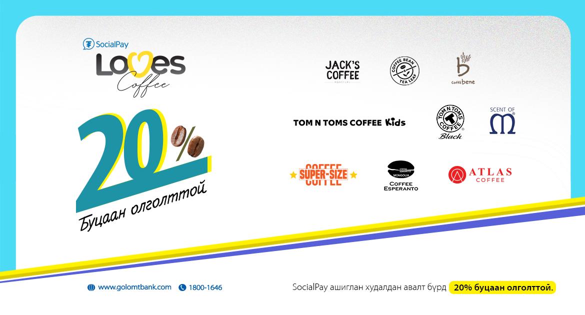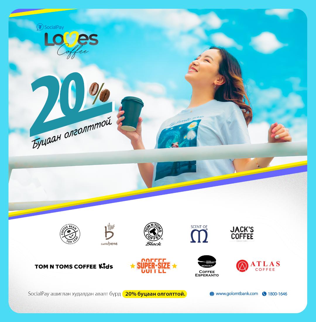Тун удахгүй зуны амралт дуусаж, завгүй ажил, хичээлийн өдрүүд эхэлнэ. Харин бидний завгүй, ачаалалтай өдрүүдийг эрч хүчээр дүүргэх нэг зүйл нь яах аргагүй КОФЕ билээ. Тиймээс хэрэглэгчдээ үргэлж хайрладаг SocialPay аппликэйшн кофены хорхойтнуудад зориулсан буцаан олголттой урамшууллаа 2022.08.22-2022.09.22-ний хооронд хэрэгжүүлэхээр боллоо. Энэ удаагийн “SocialPay Loves Coffee” урамшуулалд Улаанбаатар хотод байрлах томоохон сүлжээ кофе шопууд нэгдсэн тул та нийслэлийн аль ч бүсээс урамшуулалдаа хамрагдаж, 20%-ийн буцаан олголт авах боломжтой.