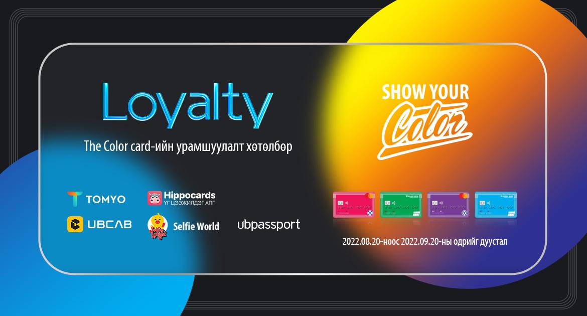 The Color Card-ийн хэрэглэгч хүүхэд, залуус та бүхэн энэ зун дуусахаас өмнө амжиж хүслийн жагсаалтаа биелүүлээд давхар бэлэгтэй урамшуулалдаа хамрагдаарай. “Loyalty” хөтөлбөр нь 2022.08.20-2022.09.20-ны хооронд хэрэгжих ба хэрвээ та энэ хугацаанд өөрийн цуглуулсан оноог ашиглаж амжаагүй бол дараа дараагийн оноотой урамшуулалд ашиглах боломжтой юм. Үүнээс гадна The Color Card-ийн шинэ харилцагч болсон тохиолдолд “Welcome point” 10,000 оноог бэлэглэх болно.