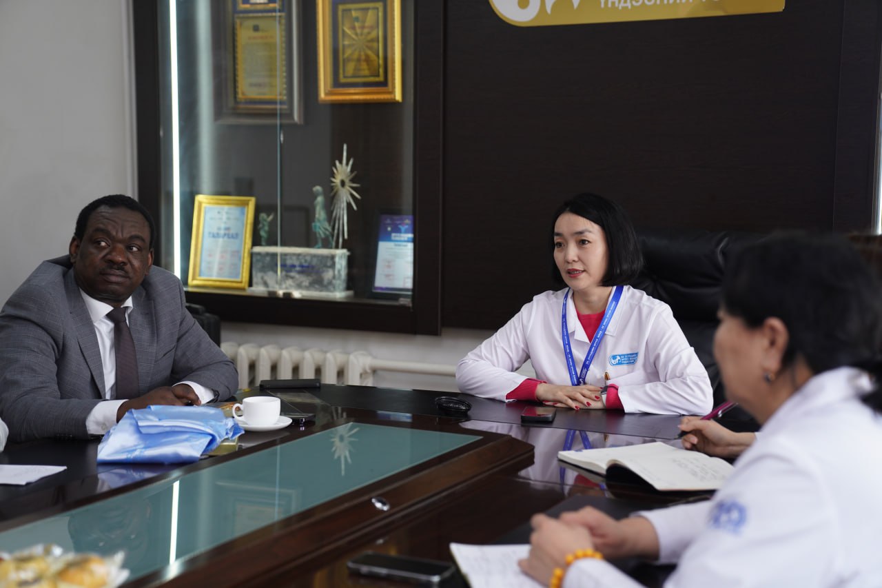 НҮБ-ын Хүүхдийн сангийн Суурин төлөөлөгч Эваристе Куоасси Комлан Эх, хүүхдийн эрүүл мэндийн үндэсний төвд ажиллаж, энэ онд хийж хэрэгжүүлэх ажил, цаашдын хамтын ажиллагааны талаар ярилцлаа.ЭХЭМҮТ-ийн ерөнхий захирал Ш.Алтантуяа “Хүүхдийн сангийн хөрөнгө оруулалтаар хийж буй хүчилтөрөгчийн үйлдвэр ашиглалтад ороход манай төв хүчилтөрөгчийн нэгдсэн системд бүрэн холбогдох боломжтой болох юм. Мөн улсын төсвийн хөрөнгө оруулалтаар барьсан өргөтгөлийн хоёр барилга ашиглалтад ороход бэлэн болоод байна. Бид цаашид эмнэлгийн үйл ажиллагааг үйлчлүүлэгч төвтэй болох зорилт тавьсан” хэмээн төвийнхөө үйл ажиллагааны талаар танилцуулсан. Төвийн үйл ажиллагаатай танилцсан Хүүхдийн сангийн төлөөлөгч Эваристе Куоасси Комлан “Олон улсын хүүхдийн хавдрын эсрэг өдөр тус төвийн үйл ажиллагаатай танилцаж, энэ онд хийж хэрэгжүүлэх ажлаа төлөвлөн ярилцаж байгаадаа баяртай байна. Бид энэ онд тус төвтэй хамтран нярайн эрт илрүүлгийн тоног төхөөрөмж нийлүүлэх, эх, хүүхдийн эндэгдлийн бууруулах, хүүхдийн зүрхний өвчнийг бууруулах чиглэлээр хамтран ажиллахаар ярилцлаа. Мөн хүчилтөрөгчийн үйлдвэр шинээр байгуулахаар ажиллаж байна.
