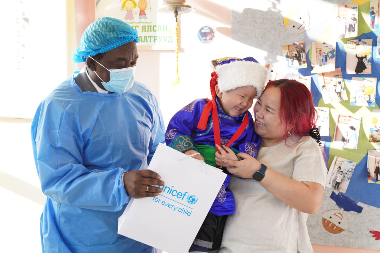 Суурин төлөөлөгч Эваристе Куоасси Комлан тус төвийн Цусны эмгэг, хавдар судлалын тасагт хэвтэн эмчлүүлж байгаа хүүхдүүдэд сэтгэлийн дэм үзүүлж, хавдрыг ялан дийлсэн баатруудад баяр хүргэв. НҮБ-ын Хүүхдийн сан нь Монгол Улсын Засгийн газрын захиалгаар ДЭМБ болон бусад олон улсын байгууллагатай хамтран хүүхдийн хавдрын эмийг худалдан авч, нийлүүлэх ажлыг зохион байгуулж, хавдартай хүүхдүүдэд зориулсан сургалтын болон хими эмчилгээний өрөөг иж бүрэн тохижуулж, шаардлагатай тоног төхөөрөмжөөр хангах ажилд дэмжлэг үзүүлж байгаа юм.
