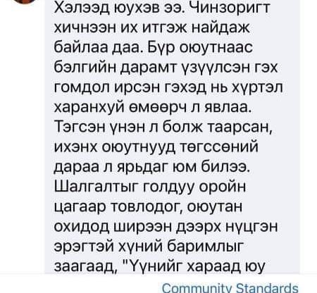 Гэтэл түүний оруулсан энэхүү мэдээллийн дор тус сургуулийн багш нар “Б.Чинзориг багшийг оюутанд бэлгийн дарамт үзүүлсэн гэх гомдол маш олон ирдэг байсан. Тухайн үед итгэхгүй, түүнийг өмөөрдөг байлаа. Гэвч бүгд үнэн болж таарсан. Оюутнууд төгссөнийхөө дараа түүний хэн байсныг, ямар дарамт үзүүлдэг тухай ярьдаг юм билээ” гэх мэтээр түүнийг оюутнуудад бэлгийн дарамт үзүүлдэг гэдгийг нь батлан сэтгэгдлүүдээ үлдээсэн байгаа юм.
