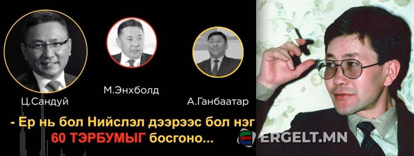 Ердөө тавхан сарын дараа Ерөнхийлөгчийн сонгууль болох нь. 60 тэрбумын хэргийн захиалагч, гүйцэтгэгчийг илрүүлсэн, илэрсэн “сонгодог” жүжиг Монгол Улсын төв тайзнаа тоглогдох гээд бэлтгэлээ базааж буй. 2016 оны УИХ-ын сонгуулийн үеэр УИХ-ын дарга асан М.Энхболд, Нийслэлийн МАН-ын хорооны дарга асан Ц.Сандуй болон Н.Ганбаатар нарын 60 тэрбум төгрөгийн талаарх ярианы бичлэг цацагдаж, сөрөг хүчний хувьд “шижир алт” болж байлаа. Тэр өдрөөс хойш УИХ, орон нутгийн нийлсэн дөрвөн ч сонгуулийн шоу болсон эл хэрэг өнөөдөр ч бүрэн шийдэгдээгүй, Ерөнхийлөгчийн сонгуультай учран золгох нь. Сонгууль болохоор л 60 тэрбумын хэргийг сэргээн шалгаж, эзэн холбогдогчийг нь хайж эхлэх юм. Уг нь эл хэрэгт Ц.Сандуй, А.Ганбаатар нарыг буруутгаж, Баянгол дүүргийн Эрүүгийн хэргийн анхан шатны шүүхээс дөрвөн жилийн хорих ял оноосон ч албажуулсан хүмүүст нь ямар нэг хариуцлага тооцоогүй өдийг хүрсэн. Гэтэл одоо эл хэрэг сонгуульд нэр дэвшигчдийн гол бамбар болчихсон “тууж” явна. МАН-ыг харлуулах сөрөг хүчний сонгуулийн шоу болсон 60 тэрбумын хэрэг олны анхааралд дахин орж ирлээ. Тодруулбал, 60 тэрбумын хэргийг албажуулсан эзнийг хайхаар хэргийг хоёр дахь удаагаа сэргээж, Тагнуулын ерөнхий газраас шалгаж байна.