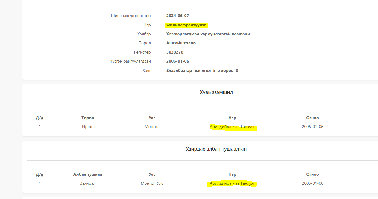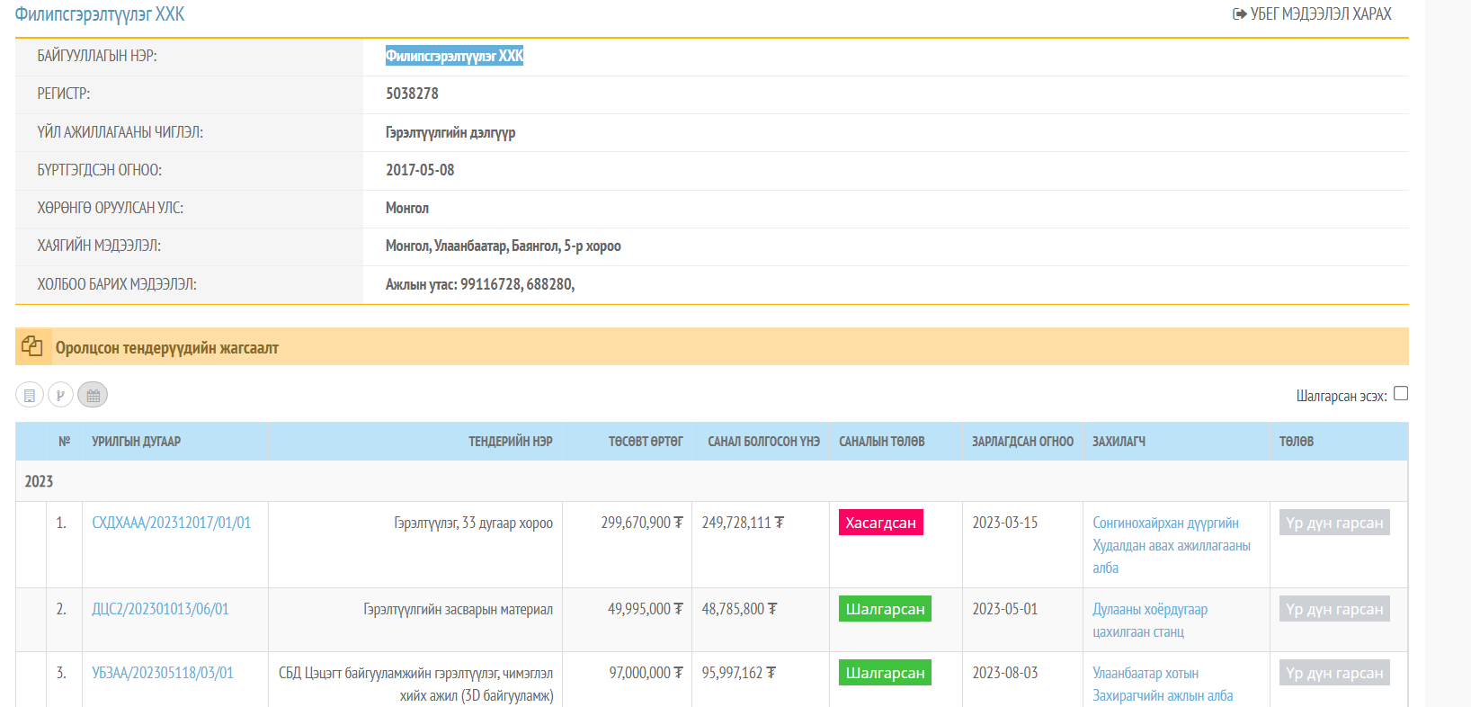 | СҮХБААТАР ДҮҮРГИЙН ИТХ-ЫН ТӨЛӨӨЛӨГЧ А.ГАНХУЯГИЙН “ФИЛИПС ГЭРЭЛТҮҮЛЭГ” ХХК ГЭР ХОРООЛЛЫН ГЭРЭЛТҮҮЛГИЙН ТЕНДЕРИЙГ “ТҮҮЖ”, УИХ-ЫН ГИШҮҮН Х.БОЛОРМААГИЙН ШИЙРИЙГ ХАТААЖ БАЙНА |