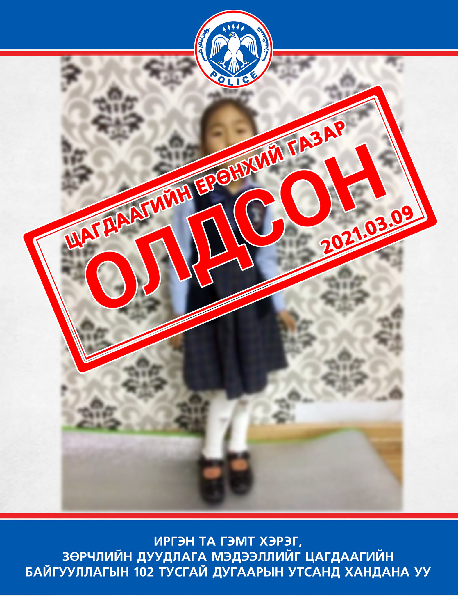Өчигдөр буюу гуравдугаар сарын 8-нд Чингэлтэй, Баянзүрх дүүргээс хоёр охин алга болжээ. Тодруулбал, нэгэн ээж өчигдөр 14:00 цагийн үед “Хүүхэд минь алга болчихлоо. Яаралтай шэйр хийгээд өгөөч. Гуравдугаар сарын 8-ны 14:00 цагийн үед Бөхийн өргөөний “Шөлөндөө” түргэн хоолны газрын ард талд .. дугаар байрлах байрны тоглоомын талбайгаас 10 настай охин минь алга болчихлоо. Харсан хүн байвал 88....... дугаарт мэдэгдээд өгөөрэй. Ягаан куртик өмсөж явсан” хэмээн нэгэн ээж өчигдөр олон нийтийн сүлжээнд бичжээ. Мөн үүний дараагаар нэгэн аав "Шэйр хийгээд өгөөрэй. Охин минь алга болчихлоо. Харсан хүн байвал 8830.... дугаар руу залгаарай” хэмээн бичсэн байсан юм.