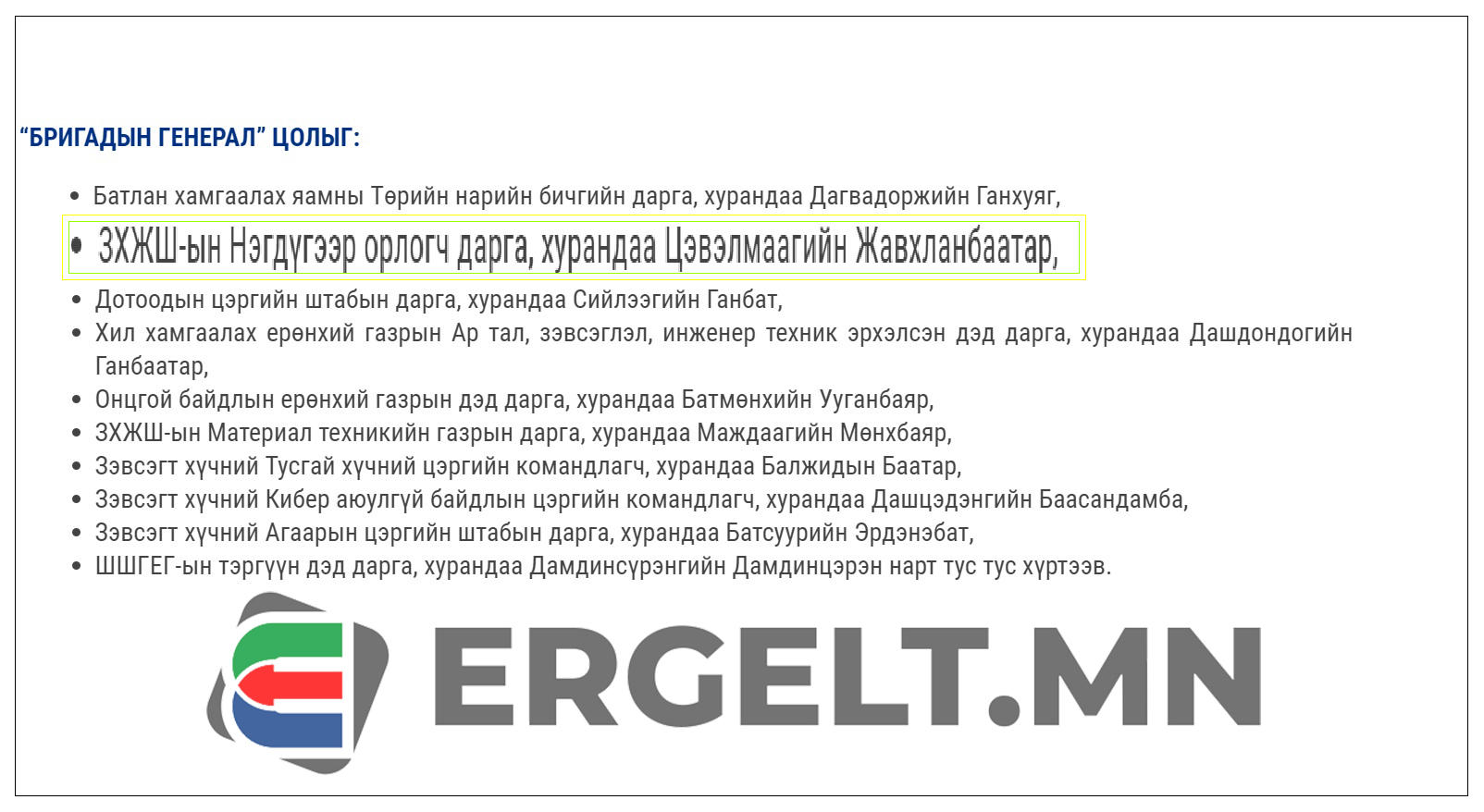 | Бусдаас хахууль авсан хурандаа Ц.Жавхланбаатарын ХЭРГИЙГ ХЭРЭГСЭХГҮЙ "БОЛГОЖ", БРИГАДЫН ГЕНЕРАЛ ЦОЛ ОЛГОЛОО |