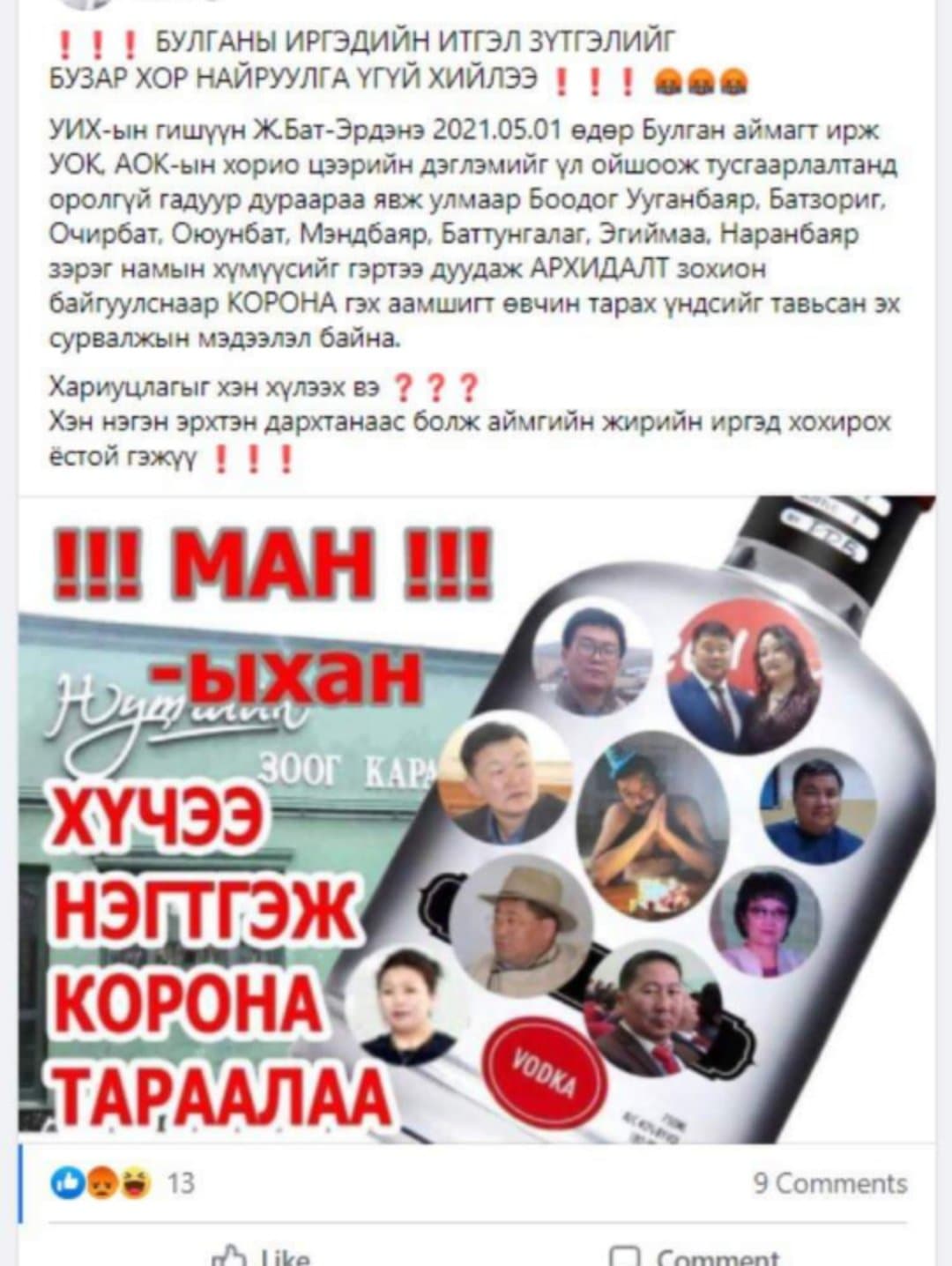 | УИХ-ын гишүүн Ж.БАТ-ЭРДЭНИЙН Булган аймагт зохион байгуулсан уулзалтын үеэр коронавирус тархсан гэв үү |