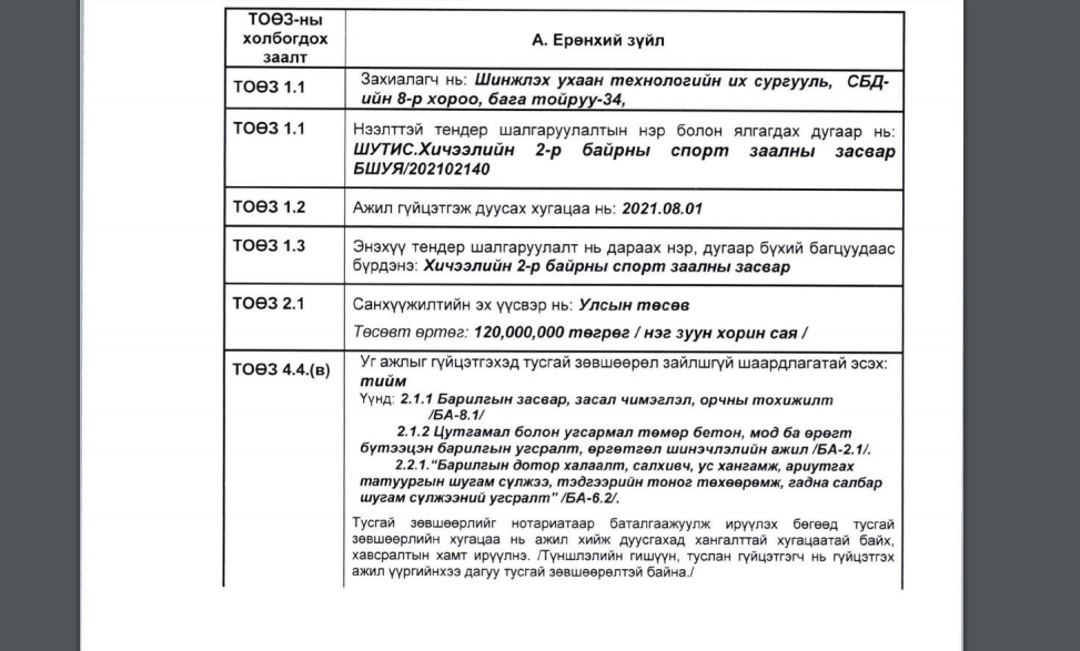 222233УИХ-ЫН ГИШҮҮН Ж.ЗОЛЖАРГАЛ АХДАА ТЕНДЕР ОЛЖ ӨГДӨГ ИНЖЕНЕР ҮҮ