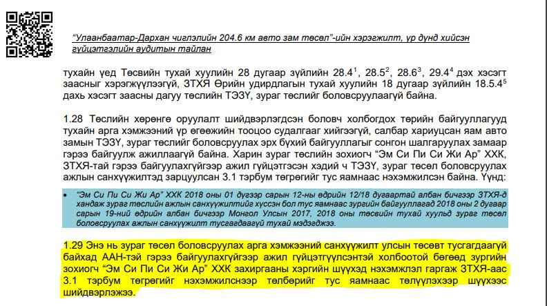 Санаандгүй тохиолдол олон байдаг ч С.Бямбацогт сайдад тохиолдсон шиг санаандгүй ховор байх. Тодруулбал, М.Нямдаваагийн хүү Н.Ариунбаярын эхнэрийг Даваагийн Намуун гэдэг. Харин Даваагийн Намууны төрсөн ахыг Даваагийн Чинтүшиг гэдэг. Гэтэл Д.Чинтүшиг нь “Эм Си Пи Си жи ар” ХХК-ийн зургийн инженерээр ажиллаж иржээ. Хоржоонтой нь, “Эм Си Пи Си жи ар” ХХК нь 2017 онд буюу Дархан-Улаанбаатар чиглэлийн 204 км автозамыг шинэчлэх асуудал яригдаж эхлэх үед зураг төслийг нь 3.1 тэрбум төгрөгөөр гаргаж, Зам, тээврийн хөгжлийн яаманд “шахсан” гэж хэвлэлээр шуугиулж явсан компани. Өөрөөр хэлбэл, С.Бямбацогт сайд нагац ах М.Нямдаваагийнхаа худын гаргасан зураг төслөөр Дархан-Улаанбаатарын автозамтай зууралдаж байгаа болж таарч байна. Хоржоонтой биш гэж үү.