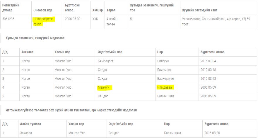 Тэгвэл С.Бямбацогтын нагац ах М.Нямдаваа руу эргэж оръё. Судлаад үзвэл, Н.Ариунзаяагийн ээж буюу генерал Д.Загджавын дүү Д.Загдсүрэнтэй М.Нямдаваа болон түүний эхнэр Г.Мөнхнасан нар гэр бүлийн найзууд ажээ. Мөн М.Нямдаваа, Г.Мөнхнасан, Д.Загджав, Д.Загдсүрэн нар нэг нутаг буюу Ховд аймгийнх гэдгийг сануулах нь зүйтэй болов уу. Энэ холбоо хамаарал болон хятадуудад лиценз “шахдаг” хэргийн тухай дэлгэрэнгүй танилцуулахын тулд Д.Загджавын Уул уурхай, хүнд үйлдвэрийн дэд сайдаар ажиллаж байсан намтар, төрсөн хүүгийнх нь лиценцтэй компаниуд, цаашлаад УИХ-ын гишүүн, хошууч генерал Ц.Сэргэлэнгийн ах дүү нарыг ч танилцуулах шаардлага гарч болзошгүй учраас дараагийн дугаартаа дэлгэрүүлэх нь зүйтэй болов уу.