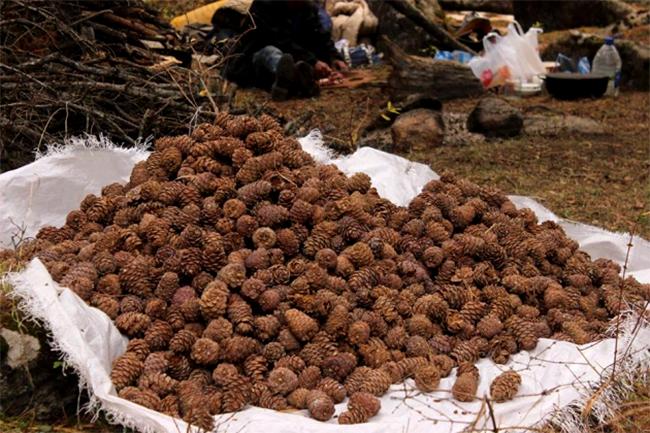 Нэг хүн 10 шуудай самар 100 метрээр өртөөлөн зөөнө. Нэг шуудай самраа үүрээд 100 метр яваад буулгаж үлдээгээд, буцаж ирээд дахин нэг шуудайг үүрч авч явна. Ингэж өртөөлөхгүй бол бусад самраа хулгайд алдах эрсдэлтэй. Уулнаас самраа буулгахын тулд бид 23 цаг өртөөлсөн. Дунд нь хоол идэж, хоёр цаг унтсан. 15 километр зам туулахын тулд нийт 3000 орчим удаа 100, 100 метрээр нааш цааш явжээ. Яаж ингэж чадсанаа мэдэхгүй ч өөрсдөөрөө бахархаж байв. Самраа машиндаа ачаад уулнаас буух үед мэргэжлийн хяналт, цагдаагийнхантай таарчих нь тэр. “Үхрийн сүүлэн дээр хутга” гэж, яаж түүж, цайруулж, үүрч дүүрч буулгалаа даа.