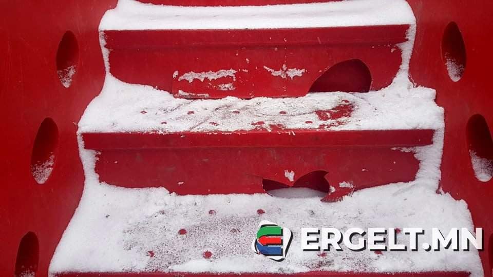 -131 дүгээр байрны гаднах гулсуурын хуванцар шатны доод суурь боолтнууд нь бүгд унажээ. Мөн шатны хэсэгтээ том хагарсан харагдана. Хүүхдүүдийн тоглох дуртай гулгуур нь хэзээ мөдгүй нурах шахсан байгаа нь том аюул.