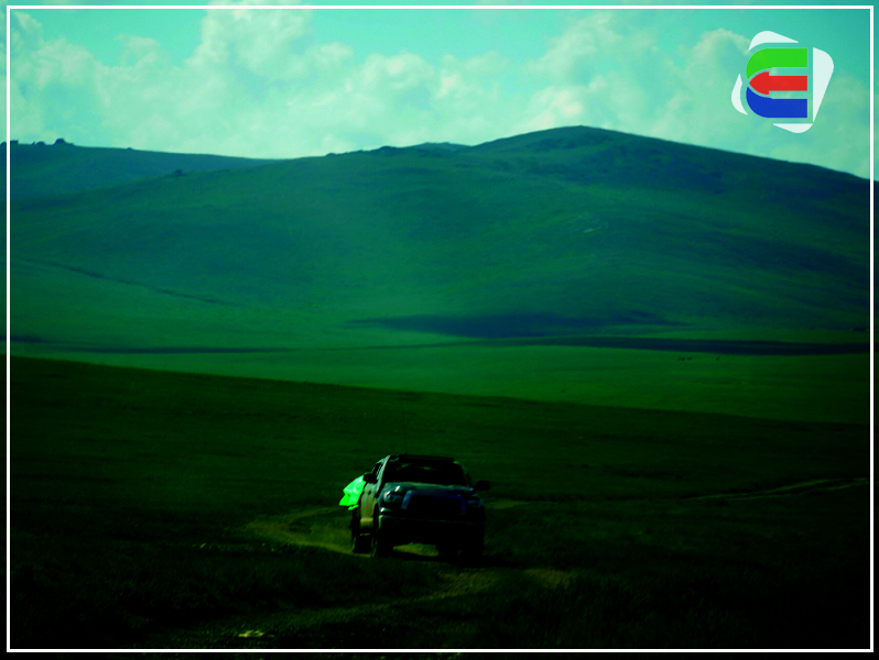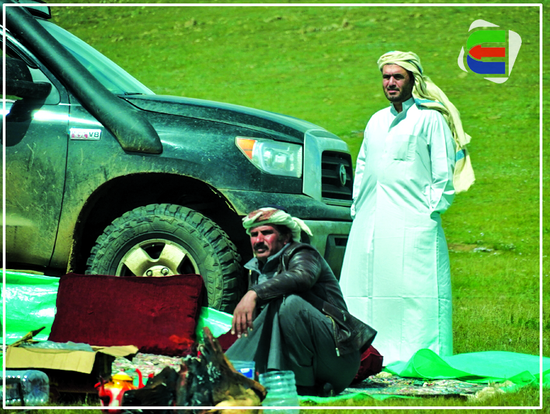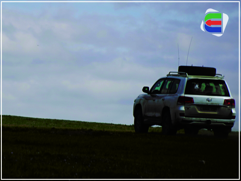 12:30 ЦАГ: Бид бараа тасарсан арабуудыг алдсандаа сэтгэл гонсойн нутгийн айлд орж, багахан ч болов мэдээлэл авах тухай ярилцаж айлын бараа харагдсан зүг хөдлөв. Гэтэл олны хөлөөс зайд уу, автомашины замаас хол, зөвхөн зүүн урд талаасаа л харагдах уулын энгэрт арабуудын машин бөөгнөрсөн байхыг олж харлаа. Чухам харж болох ганц зүгээс нь бид ирж таардаг нь олз болов. Тэдэнд сэм дөхөж, тухлаж буй уулынх нь оройгоос хэсэг зураг дарж амжив. Нэгэнт зогсоож уулзах гээд чадаагүй тул “халз таарсан дээр нь давхиад очъё” хэмээн шийдэв. Бидний барааг харсан тэд сандралдаж буй нь илт дороо эргэцгээж, нааш, цааш гүйлдэнэ. Машинаасаа бууж “Сайн байна уу” хэмээн мэндлэхэд бүгд толгой дохицгоох аж. “Приус 20” маркийн автомашинд монгол бололтой хоёр залуу сууж байв. Хамгийн түрүүлж тэдэн рүү очиж, “Хэлмэрч, орчуулагч нь уу” гэхэд “Та нар юун хүмүүс билээ. Хаанаас явж байгаа юм” гэж мэндийн зөрүүгүй сандран асуулаа.