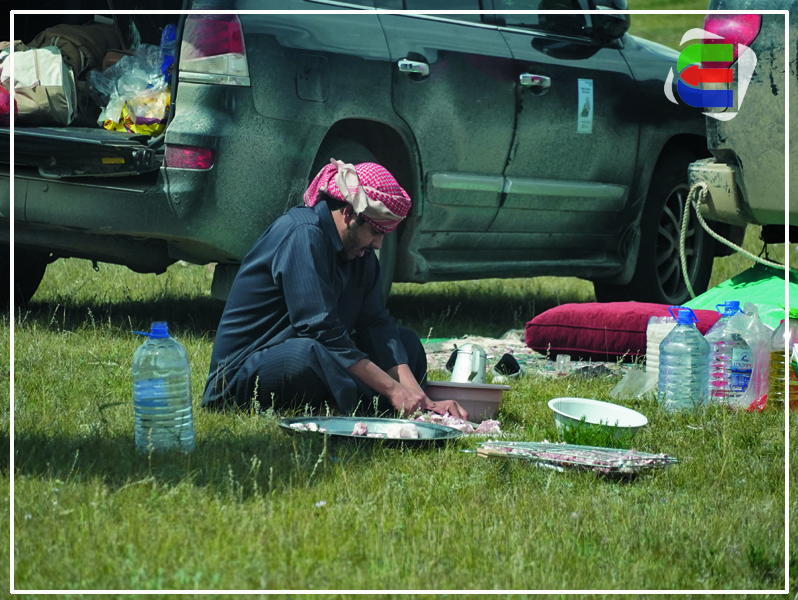 “Бид Эргэлт.мн мэдээллийн сайтаас явж байгаа сурвалжилах баг байна” гэж хэлэхэд тэд бүрч сандарсан бололтой “Бид нарын зургийг битгий аваарай. Өмнө нь хүн шиг амьдарч, хэдэн төгрөг олохын тулд л арабуудтай хамтран ажиллаж байсан юм. Яах вэ таньж, мэддэг ганц хоёр араб ирсэн болохоор нь уулзахаар ирсэн юм. Орчуулагч нь тэр халзан толгойтой, хууз сахал болсон ах” гэж хэлээд автомашинахаа цонхыг хаачихав. 30 хүрч яваа болов уу гэмээр эр шинэ төхөөрсөн хурганы махаар шорлог хийх аж. Тэд урд шөнө отгынхоо ойрхон байх айлаас 65 мянган төгрөгөөр хурга худалдан авчээ. Арабууд ихэвчлэн хурганы мах иддэг учир тэднийг ирэхийг хүлээдэг малчид цөөнгүй байх болжээ. Мал сүргийнхээ буяныг хүртэж, хэдэн төгрөг олохыг хүссэн малчдын буруу гэж юу байх билээ дээ. Арабууд хэзээний энэ өргөн уудам тал нутгийн эзэн мэт ханхайн сууцгаах бөгөөд биднийг ёжлох мэт тачигнатал инээнэ. Ахлагч нь бололтой хижээл эрийн хэлснийг орчуулагч нь дамжуулав.