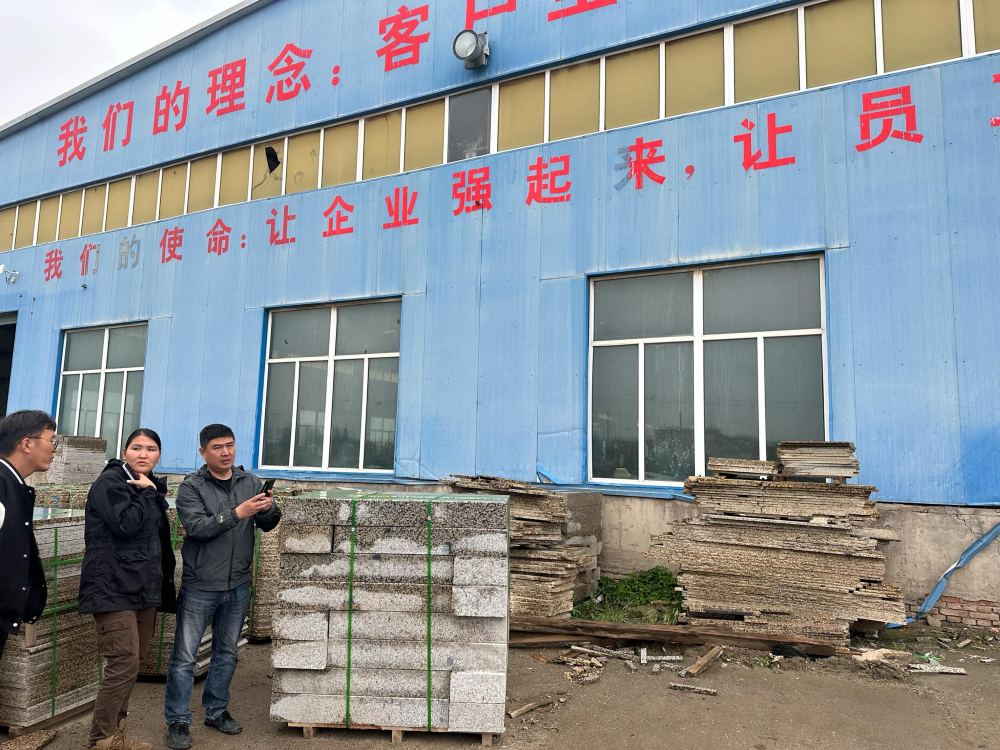 Хурдны замаар 300 км давхиж, хүрэх газартаа ирлээ. Энэ аймагт боржин чулууны 7-8 үйлдвэр байдаг. Монголчуудад хүрч байгаа бордюрын олонх нь Ташингийн чулууны үйлдвэрээс очиж байгаа юм. Жижигхэн суурингаас хоёр км-ийн зайд байрлах үйлдвэрүүд Монгол руу ачиж байгаа бордюрыг эгнүүлэн тавьжээ. Боодол, боодлоор нь багцлаад хураасан байна. Үйлдвэр нь зогсоо зайгүй ажиллаж, агуулах нь дүүрэн байх аж.