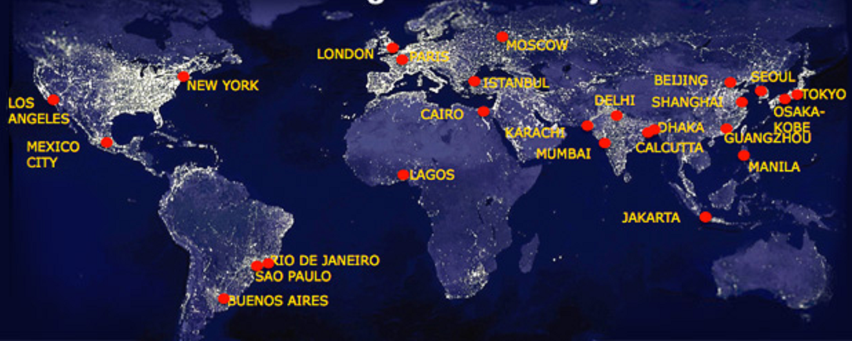 Олон улсад 10 сая давсан хүн амтай хотыг мега хот нэрлэдэг. 1975 онд дэлхийд мега хотын статустай ердөө гуравхан хот байсан нь Токио, Нью-Йорк, Мехико. Харин өдгөө 33 болсон мега хотуудад дэлхийн нийт хүн амын 10 орчим хувь нь амьдарч байна. Аж үйлдвэрийн хувьсал, хөгжингүй орнуудын эдийн засгийн чиг баримжаатай холбоотойгоор өөрчлөгдөх олон салбар мега хотуудад нөлөөлдөг. Тэгвэл өнөө цагийн мега хотын хөгжил хөгжингүй орон гэхээсээ дэлхийн хамгийн буурай хөгжилтэй бүс нутаг руу чиглэж байгаа нь сонирхолтой.