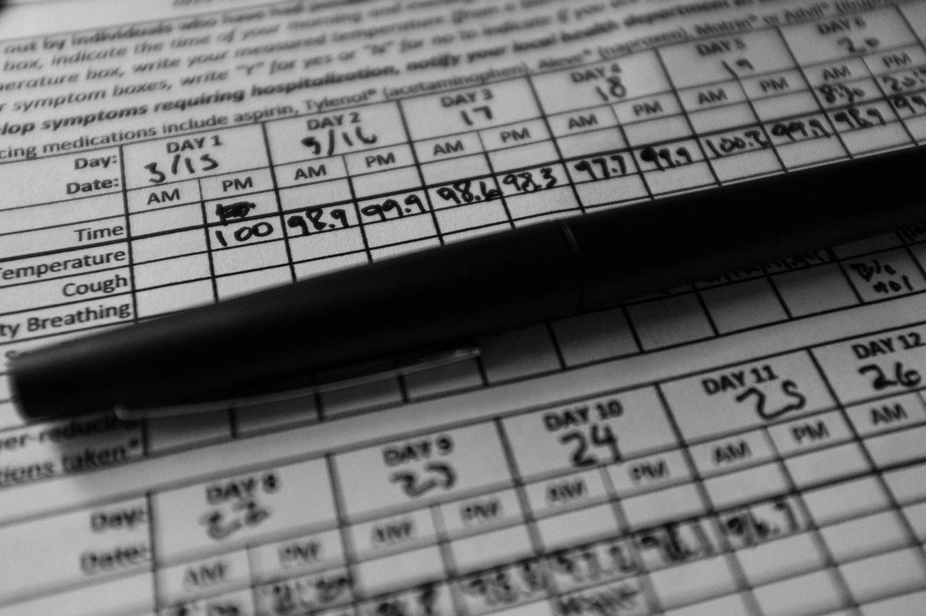 -“Тусгаарлалтын 11 дэх өдөр: Оренж контригийн эрүүл мэндийн хэлтсээс хянаж буй шинж тэмдэг болон биеийн хэмийг хянах хуудас”-Пит