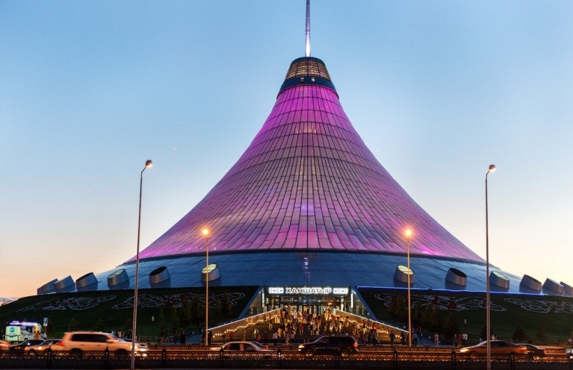 “Шатыр” гэх нь бас л манайхны “Асар” гэсэн үгтэй утга агуулга дүйдэг. Тэгэхээр “Хан Шатыр” нь “Хаан Асар” гэж орчуулагдах буй заа. Энэ “Хаан Асар” нь 150 метр өндөр, дотогшоо 127 мянган шоометрийн багтаамжтай аж. Брэндийн нэртэй дэлгүүрүүд, кафе, зоогийн газар, хүүхэд багачуудын тоглоомын төв, үлэг гүрвэл, ан амьтдын үзүүлэн атракционтай, тэр ч байтугай нэг давхарт нь далай тэнгисийн эргийнх шиг элстэй, гол устай наран шарлагын газартай гэх юм билээ. Бүр халуун дулаан бүсийн уур амьсгалыг санагдуулахаар далдуу мод хүртэл тэнд нь ургаж байдаг аж. Элсийг нь Мальдивын арлаас тусгайлан авчирсан гэнэ. Баатарчулуун зөвлөх ч бас сайхан байгууламж гээд түүнийг магтаж байв. Дэргэдүүр нь ийн аялаж явахад үдшийн бүрий эхлэж Астана хот гэрлээ асааж иржгэр цайвар “Хаан Асар” нь нил ягаан өнгөөр туяарч байлаа. Хэдхэн мөчийн дараа алтарч шаргалтаад явчихна лээ. Доод хэсгээрээ зэсэрхүү хүрэн, дээшлэх тусмаа алтан шаргал болсоор үзүүр хэсэг нь бүр хурц шараар туяараад явчих жишээтэй. Гэрлээр ёстой л тоглох шиг болж байв. Английн нэрт архитекторч Норман Фостер зураг хөргийг нь гаргаж ийн бариулсан гэнэ. Завтай болоод цагтайсан бол ороод гарахсан гэж бодогдож байлаа. Бидний дараагийн танилцсан барилга байгууламж бол энэхүү нэрт архитекторчийн хоёрдахь бүтээл болох Астанагийн Пирамид. Ерөнхийлөгч Назарбаев анхандаа энэ пирамидыг Египетийн алдарт Хеофсын Пирамидтай хэмжээ дамжаагаараа яг адилхан 137 метр өндөртэй барихаар хар зургийг нь гаргасан байж. Архитекторч Фостер Норман, хэдий Назарбаевынх гэсэн ч арай л дэндсэн санал санаачлага байна гэж үзээд түүнийг нь зөвшөөрөөгүй юм гэнэлээ. Тэрээр өөрийнхөөрөө зүтгэж өнөөгийн 62 метр дээр хатуу зогссон аж. Хотын хамгийн өндөрлөг гэгдэх 15 метрийн өндөр толгод сонгосных Астана Пирамид бусад барилга байшинтай харьцуулахад 77 метр өндөр хэмээн тооцогддог аж. Нэрт архитекторч Норманаас хожим нь сурвалжлагчид “Ерөнхийлөгчийн хүсэл саналыг тэр бүрий хүн зөрчдөггүй байхад Та яагаад зөрүүдлэв?” хэмээн асуухад тэрээр “Архитекторч бид хэн нэг эзэнтэй шууд харьцдаггүй л дээ, захиалагч Туркийн “Сембол” компани маань өндөр нэр хүндтэй, хариуцлагатай, гүйцэтгэгчээ бас хүндэтгэдэг учраас бидний зураг төслөөр шийдэж Астана Пирамидыг бариулсан. Хеофсын Пирамидыг яг дуурайлгасан бол Египетийн ард түмэн, улс орнуудын эсэргүүцэлтэй тулгарах аюул ч байсан” хэмээн ярьжээ.