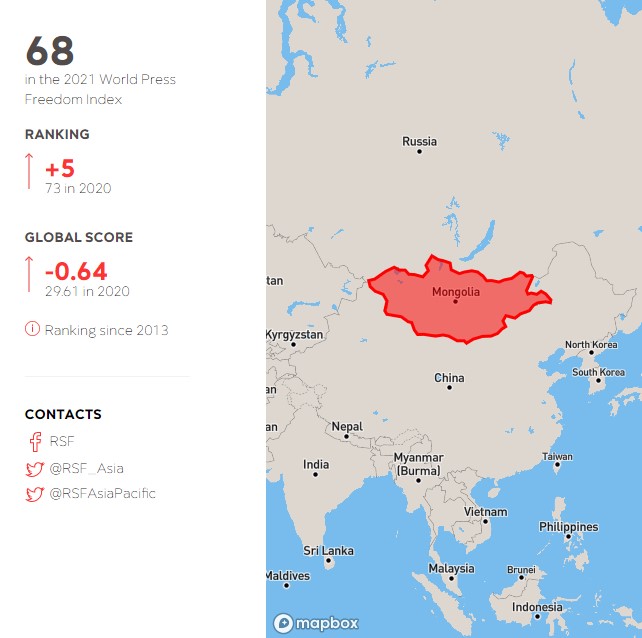 | Монгол Улс хэвлэлийн эрх чөлөөний индекст 68 дугаар байрт жагсжээ |