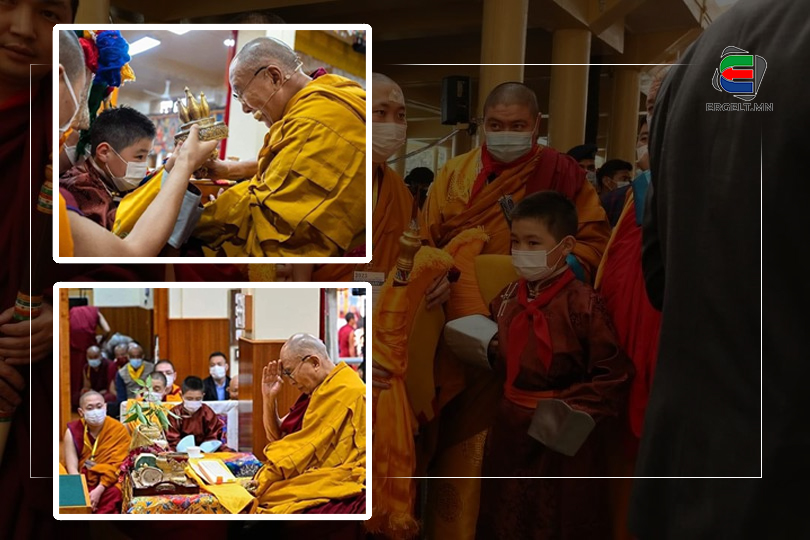 Ёслолын эхэнд 14 дүгээр Далай лам Богдод авшиг хүртээж, мэдэл өгөхийн өмнө нарны өмнөөс харж суун бэлтгэл хийх аж. Улмаар бэлтгэл дууссаны дараа хийдэд зассан ширээнд суух бөгөөд Дээрхийн гэгээний зүүн гар талд Богд ламын хойд дүр халх монгол хүү сууж байна. Өдгөө 10-аадхан настай Богдын хойд дүр энэ хүү халт монгол гаралтай ч баруунд төрж, өссөн АНУ-ын иргэншилтэй хүү гэнэ. Хүүг төрсний дараа X Богдод тодруулсан ч Дээрхийн гэгээн Далай лам болон хүүгийн эцгийн хүсэлтээр олон нийтэд зарлалгүй энэхүү авшиг хүртээх өдрийг хүлээжээ.