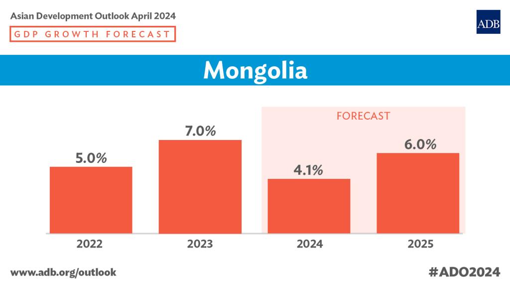 Азийн хөгжлийн банкнаас гаргасан шинэ судалгааны тайландаа Монгол Улсын 2024 оны эдийн засгийн өсөлтийн төсөөллөө 4.1 хувь болгож бууруулжээ. Тухайлбал, өнгөрсөн онд Олон улсын валютын сангаас Монголын эдийн засаг 2024 онд 4.5 хувиар өснө гэж тооцоолж байсан ч оны төгсгөлд төсөөллөө огцом ахиулж, 6.5 хувь болгоод байсан. Харин Азийн хөгжлийн банкнаас Монголын эдийн засгийн өсөлт өргөн хүрээтэй болж чадахгүй хэмээн дүгнэж, өсөлтийн төсөөллөө 4.1 хувь болгон бууруулав. Хэдий өнгөрсөн жил уул уурхайн салбарын өсөлттэй холбоотойгоор долоон хувийн тэлэлттэй байсан Монголын эдийн засаг энэ онд эдийн засгийн өсөлтөө хадгалж, ДНБ-ээ өсгөж, инфляцаа бууруулах хүлээллтэй байсан ч бүс нутгийн хэмжээнд үүссэн дунд хугацааны сорилттой холбоотойгоор эдийн засгийн хэд хэдэн эрсдэлтэй тулгарч болзошгүй байна. Жишээлбэл, Олон улсын валютын сангаас Азийн эдийн засгийн өсөлтийн төсөөллөө 4.5 хувь болгосон. Энэ нь бүс нутгийн хоёр том эдийн засаг болох БНХАУ болон БНЭУ-ын эдийн засгийн хэтийн төлөв сайжрах хандлагатай байгааг харуулж буй. Гэсэн ч өсөлт өнгөрсөн оны таван хувьтай харьцуулахад буурах төлөвтэй байгаа юм.