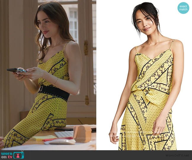 Парисын загварын долоо хоногийг санагдуулам уг даашинз “See by Chloé” брэндийнх бол цэгтэй торон цамц нь “Zara” брэндийнх аж. Эдгээрийг хослуулсан нь үнэхээр төгс зохицол байв.
