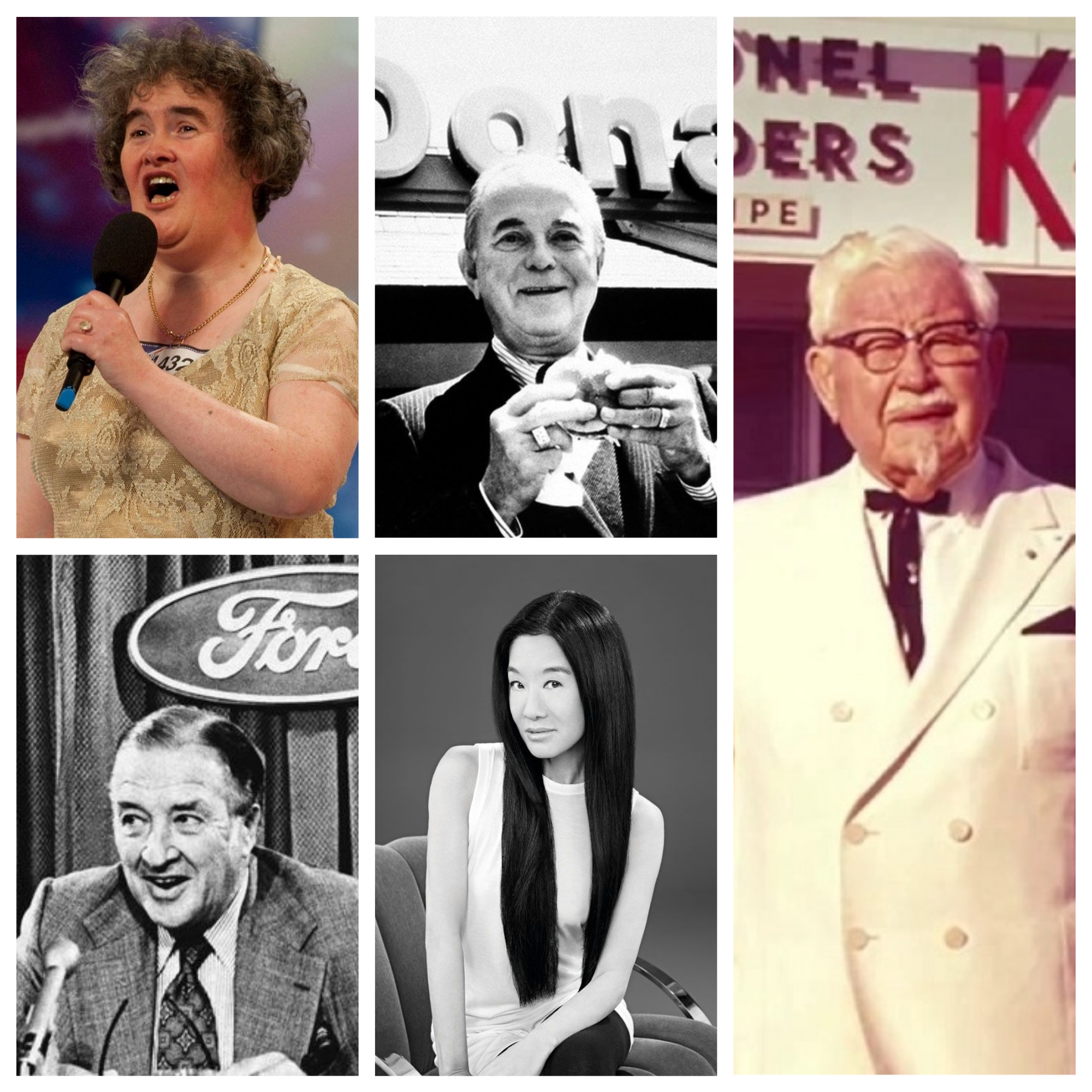 Дэлхийн дахинд алдартай амтат шарсан тахианы “KFC” сүлжээ рестораны үүсгэн байгуулагч Харланд Сандерс 66 насандаа тийм ч амжилттай бизнесмэн байсангүй. Тэрбээр тахианы махан хоолоор дагнасан ресторан ажиллуулж бизнесээ эхлүүлж байв. 1964 онд 73 настайдаа бизнесийнхээ эрхийг хоёр сая ам.доллароор худалдсанаар өнөөгийн сүлжээ бизнесийн гараагаа тавьж байв.