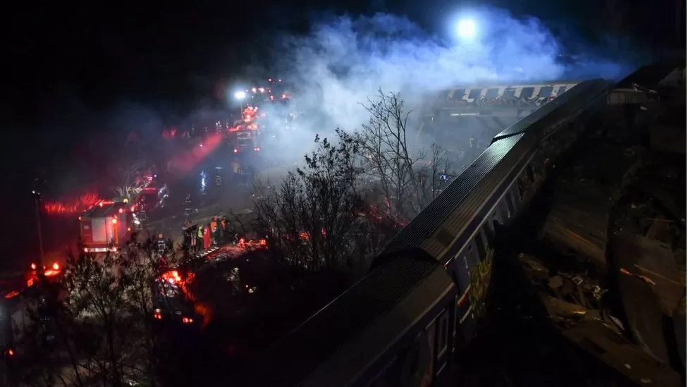 Суудлын галт тэрэг Грекийн Салоники, Лариса хотын хооронд явж байсан бөгөөд ослын улмаас Лариса хотыг нүүлгэн шилжүүлсэн талаар эх сурвалж “Reuters” агентлагт мэдээлсэн аж. Одоогоор галт унтраах ангийн 17 машин ослын газарт гал унтраахаар ажиллаж байна. Мөн ослын талаар орон нутгийн оршин суугч “Газар хөдлөлт шиг л байсан” гэжээ.