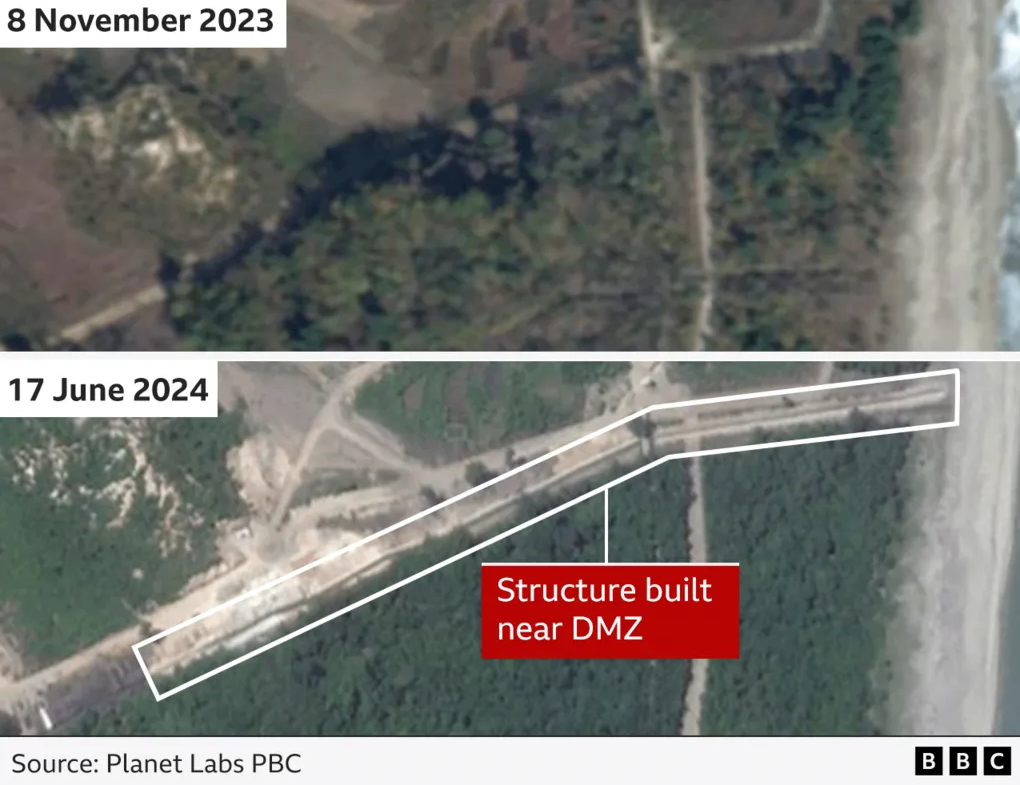 Хойд Солонгос Өмнөд Солонгостой хиллэдэг хилийн зарим хэсэгтээ хана барьж эхэлсэн талаар БНСУ-ын хэвлэлийнхэн мэдээлж эхэлжээ. Үүнтэй холбоотойгоор “BBC Verify”-аас хиймэл дагуул ашиглан БНАСАУ, БНСУ-ын хилийн зарим хэсгийн зургийг авч, Хойд Солонгос хилийн дагуу хана барьж эхэлснийг баталгаажуулсан байна. Тодруулбал, хиймэл дагуулаас авсан зурагт ажиглагдсанаар хоёр орны хилийн зааг дахь цэрэггүй бүс гэж нэрлэсэн газарт Хойд Солонгосын талаас дөрвөн км орчим урттай хана бариад байгаа аж.