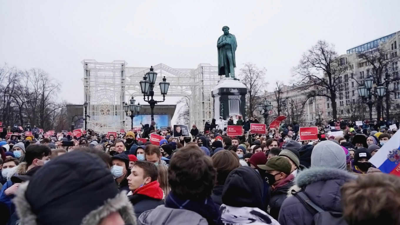 Навальный нэгдүгээр сарын 17-нд Берлинээс эх орондоо буцаж ирсэн бөгөөд түүнийг буухад шууд баривчилсан билээ. Түүнийг баривчилсанд бухимдсан тэмцэгчид "Путин бол хулгайч, хүнлэг бус" хэмээн лоозон барьж эсэргүүцэж байна. ОХУ-ын дотоод хэргийн сайд "Москва хотод 4000 гаруй хүн жагссан" гэж мэдэгдсэн боловч өөр эх сурвалжууд 10 мянгаас дээш хүн жагсаж байна хэмээн мэдээлжээ.