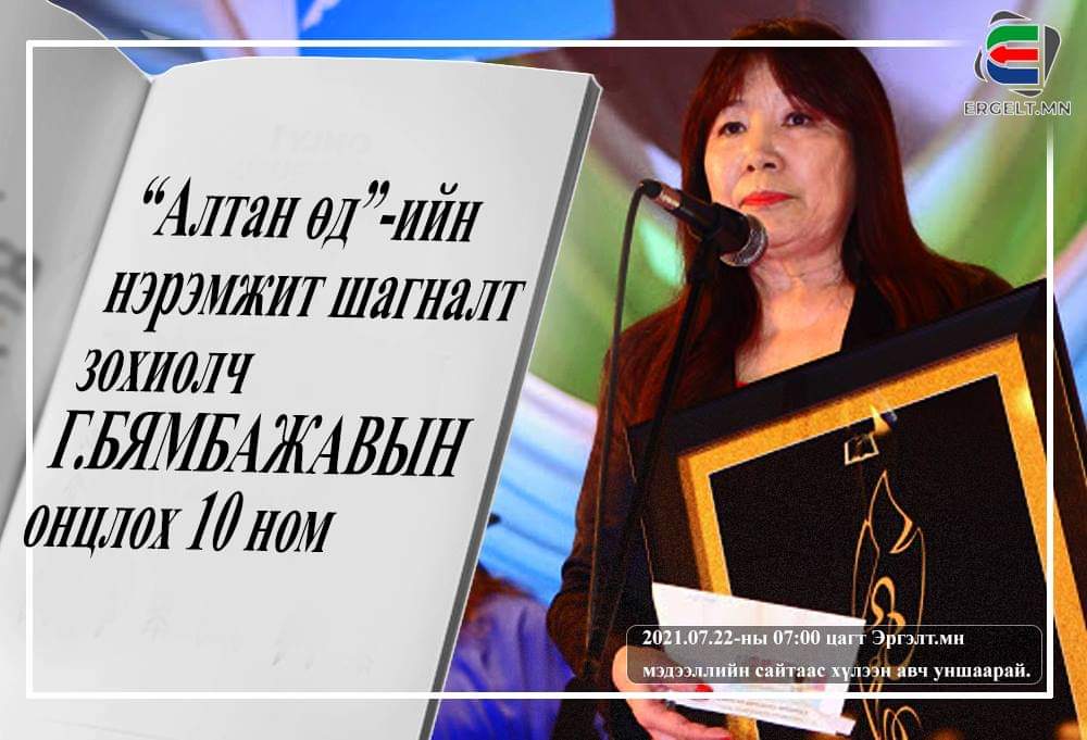 | “Алтан өд”-ийн нэрэмжит шагналт зохиолч Г.БЯМБАЖАВын онцлох 10 ном |