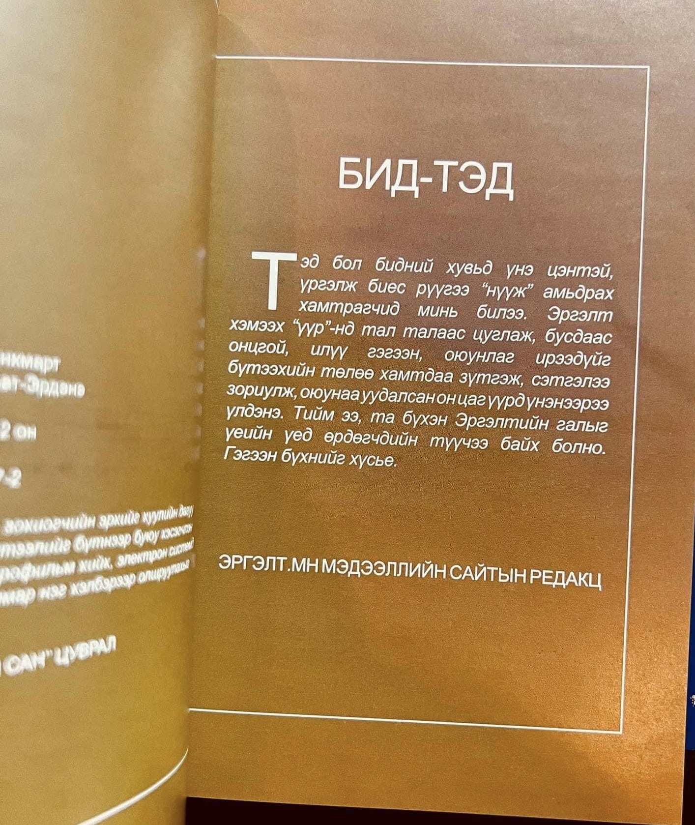 | "БИД-ТЭД" НОМООС ОНЦЛОХ ТАВАН ЗҮЙЛ |
