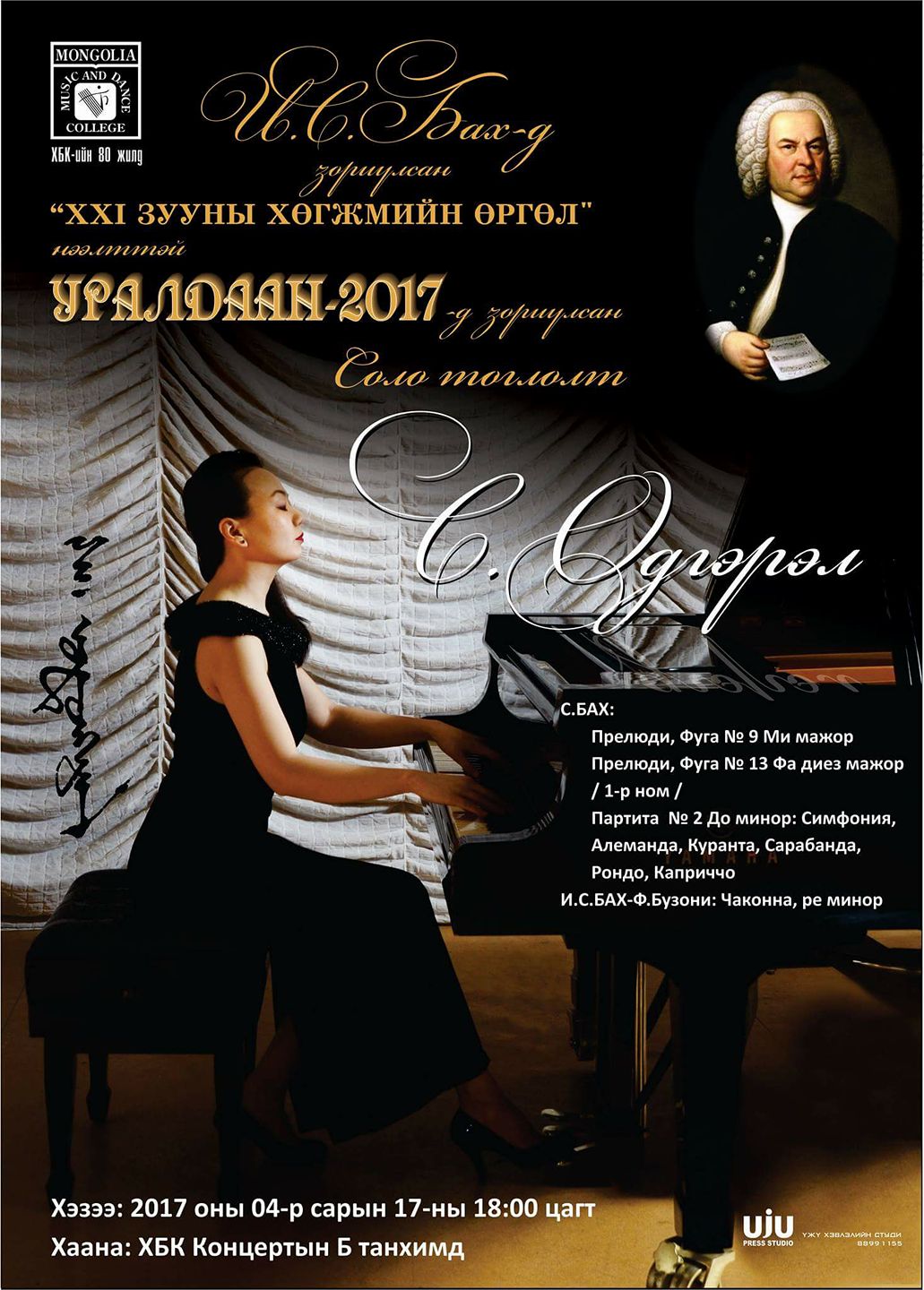 -Мэргэжилдээ чадварлаг, дэлхийн олон улсад амжилт гаргасан төгөлдөр хуурчид төрж байгаа нь сайхан ч монгол бүтээлээсээ төдийлөн тоглохгүй, тоохгүй байгаа нь сэтгэл гонсойлгодог шүү. Санаснаар болдог бол монгол хөгжмийн зохиолчдынхоо тэр гайхамшигт бүтээлээс л тоглож байвал сайхан санагддаг?