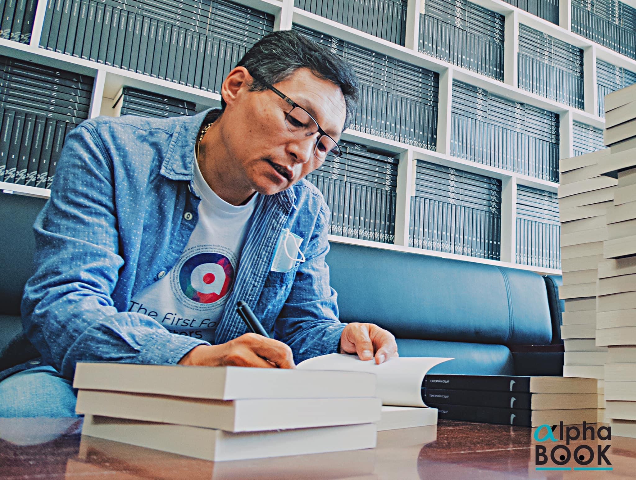 Тэрбээр дөрөв дэх роман болох “Бөөгийн домог”-оо 2010 оны гуравдугаар сард хэвлүүлсэн бөгөөд энэхүү бүтээлээ бичихийн тулд гурван жил дараалан Байгаль нуурын Ольхон арал руу явсан гэдэг. Энэхүү арлынхаа тухай тэрбээр “Их далайн дундах бяцхан тал нутаг. Одод энд тодоос тод цацарч, домог зүүдлэгддэг...” гэж бичсэн нь бий. Зохиолд халх залуу Байгаль нуурын арал дээр суудаг бөөтэй танилцан, дэргэд нь долоон жилийг өнгөрүүлж байгаа тухай өгүүлэх бөгөөд жил бүрийг нэг онцлог явдлаар төлөөлүүлсэн долоон бүлгээс бүрдэнэ.
