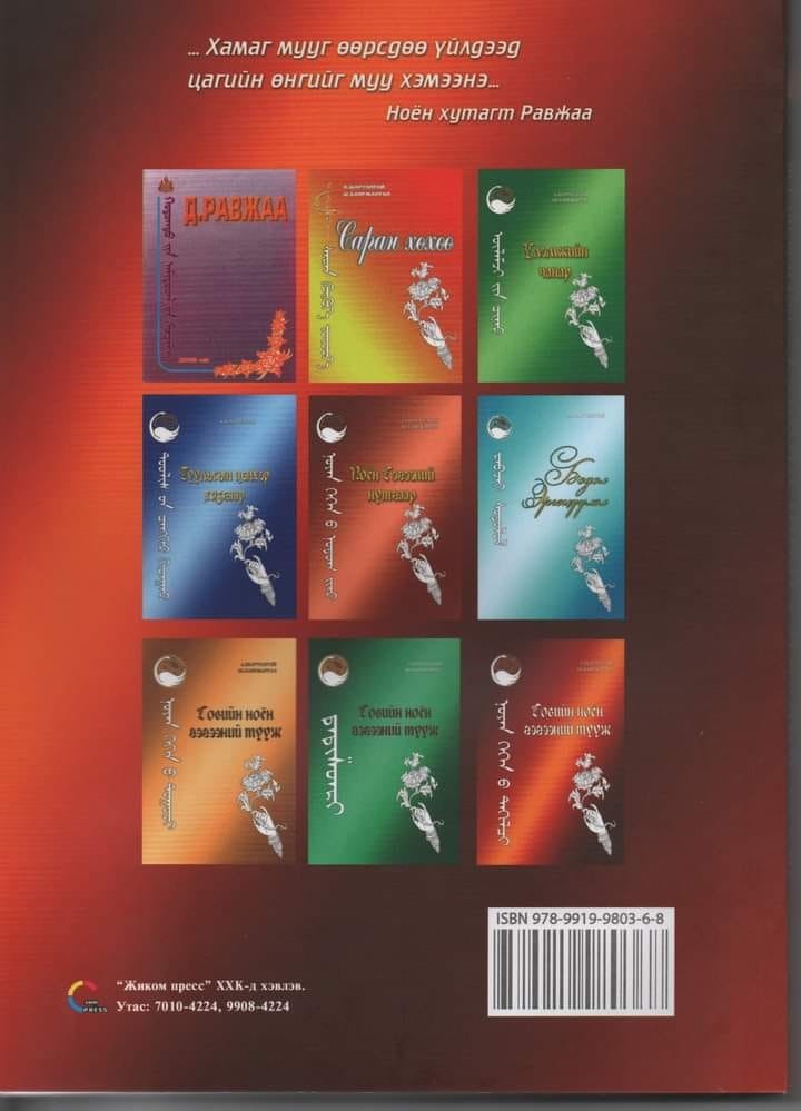 Зарим сайхан үгс өөрт нь хүрэлгүй оочин унаж, түүний тухай бичихээр суугаа хэн нэгэнд хэрэгтэй болох төдийнхнөөр л үлддэг мэт. Гэхдээ тэдгээр үнэт үгс гарах хүртэл нь амьдарч, бүтээлээ туурвисан хүний үйлс л өөрөө жинтэй юм даа. Тэр ертөнцийн хөх харгуйд зохиол бичин “үдэлж”, өгүүллэг, тууж, роман бичиж, Говийн ноён хутагт Д.Равжаагийн бүтээл туурвилыг судлан түгээх үйлсэд авьяас билиг, сэтгэл, ухаанаа зориулан амьдарсан.